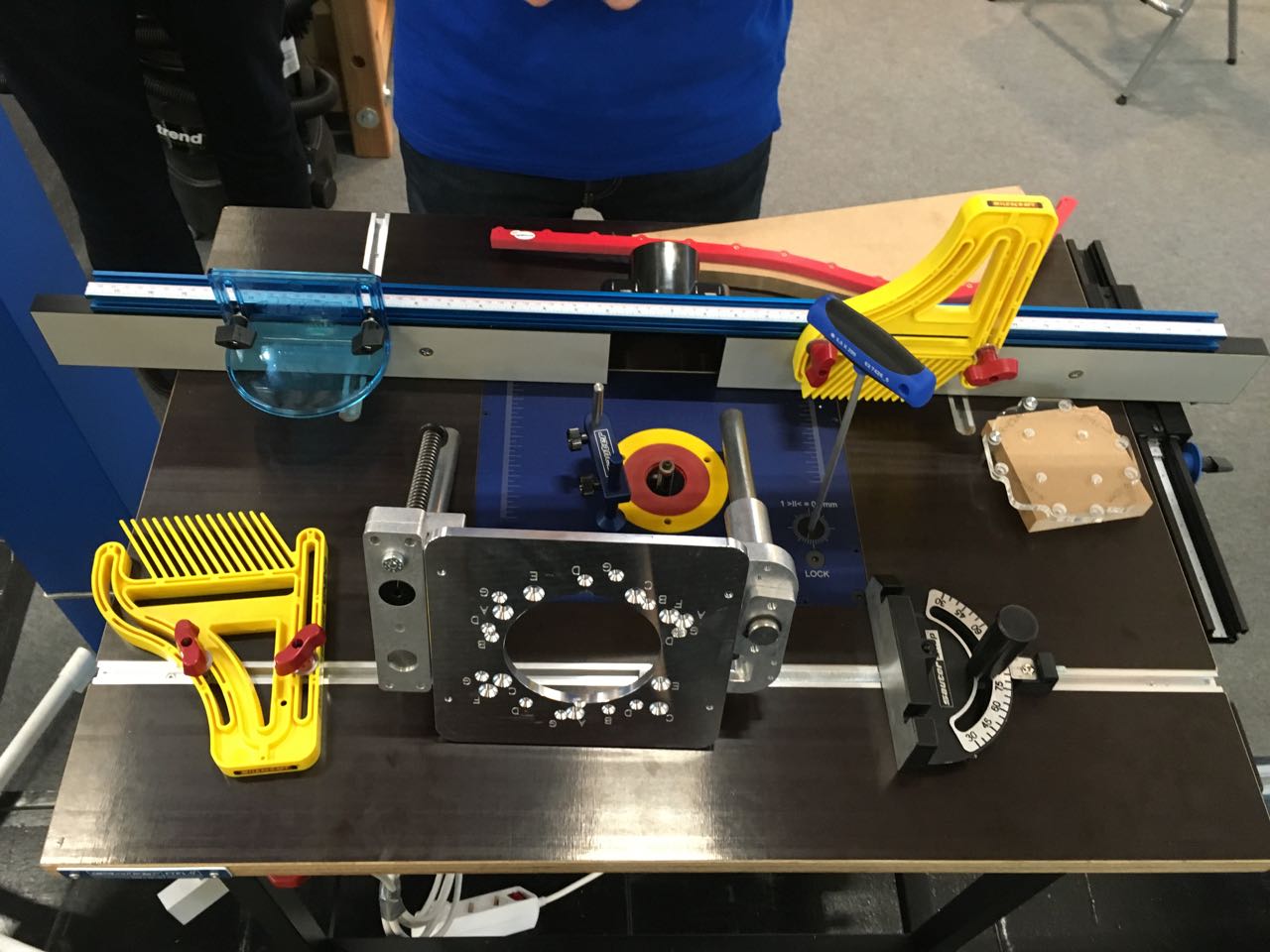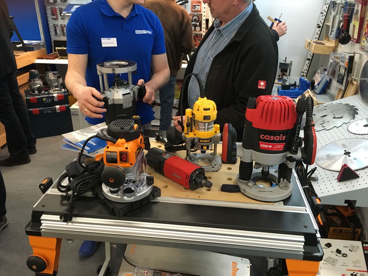 Gleich um die Ecke war der Stand der Fa. Sauter zu finden, die als Anbieter von Oberfräsen und entsprechendem Zubehör vielen Holzwerkern bekannt ist. Herstellerübergreifend konnte man hier viele Maschinen im direkten Vergleich in die Hand nehmen.