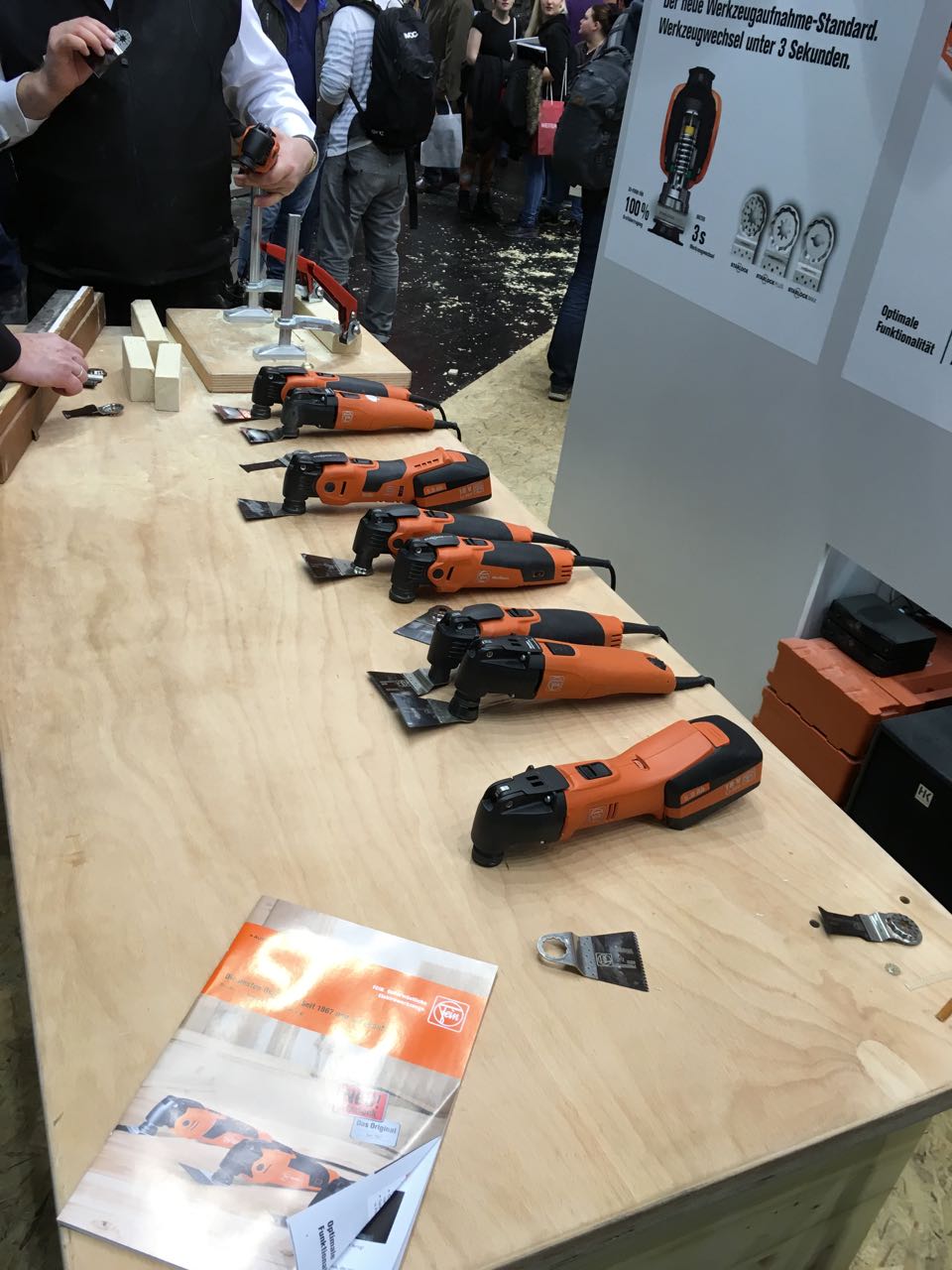 Im Vorbeigehen konnte ich noch einen Blick auf die Oszillationswerkzeuge von FEIN werfen, die jetzt mit einer neuen, herstellerübergreifenden Werkzeugaufnahme ausgestattet sind.