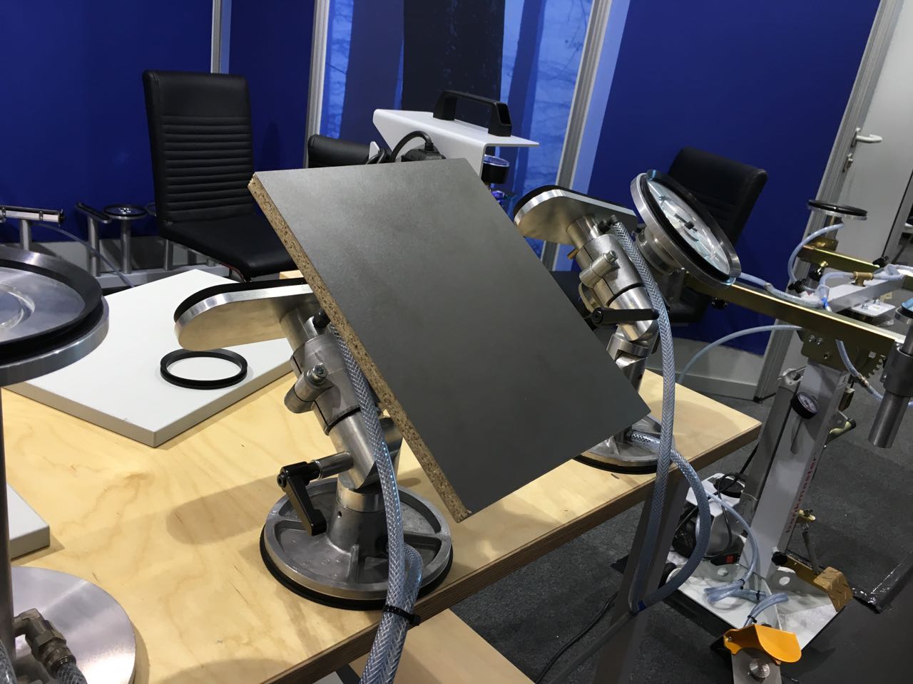 Gleich daneben wurden die Vakuum-Spannsysteme von Doscorino präsentiert. Sehr leise Vakuum-Pumpen und eine flexible Ausbaufähigkeit kennzeichnen diese Systeme.