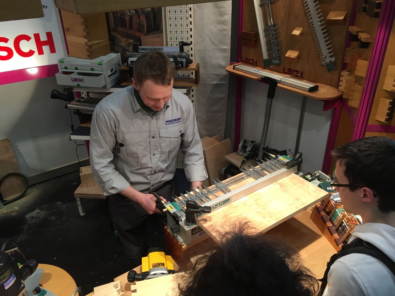 Auf großes Interesse stieß auch die Präsentation der Zinkenfrässchablone von LEIGH durch den deutschen Importeur Hacker Rosenheim. Auch diese Vorführung war überaus kurzweilig und konnte die Arbeitsmethodik gut vermitteln.