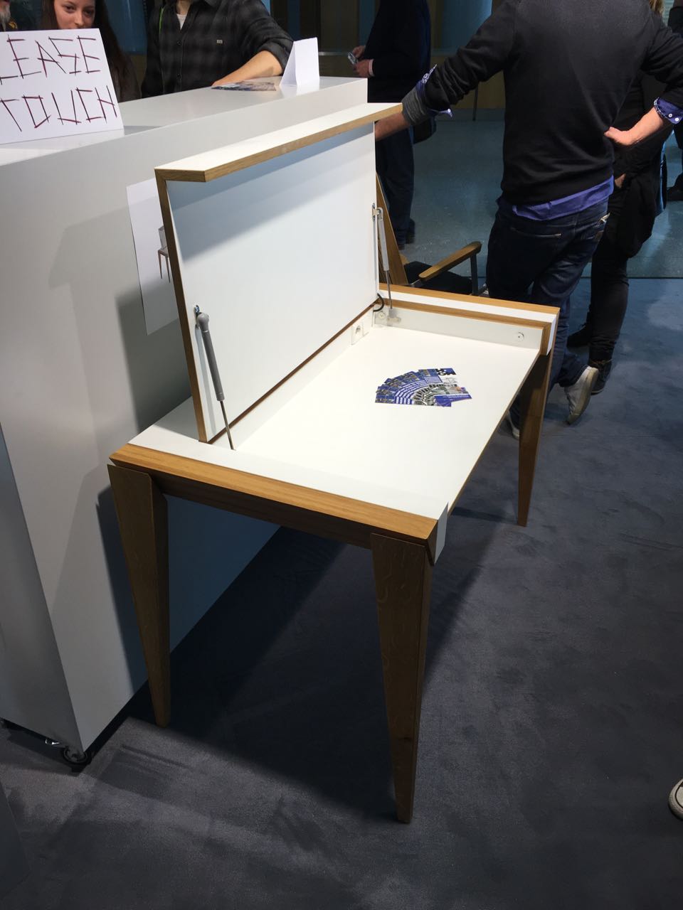 Beim Hinausgehen aus Halle 11 im Foyer war dann noch eine Ausstellung von Möbelstücken verschiedener Meisterschulen für das Holzhandwerk zu sehen.
