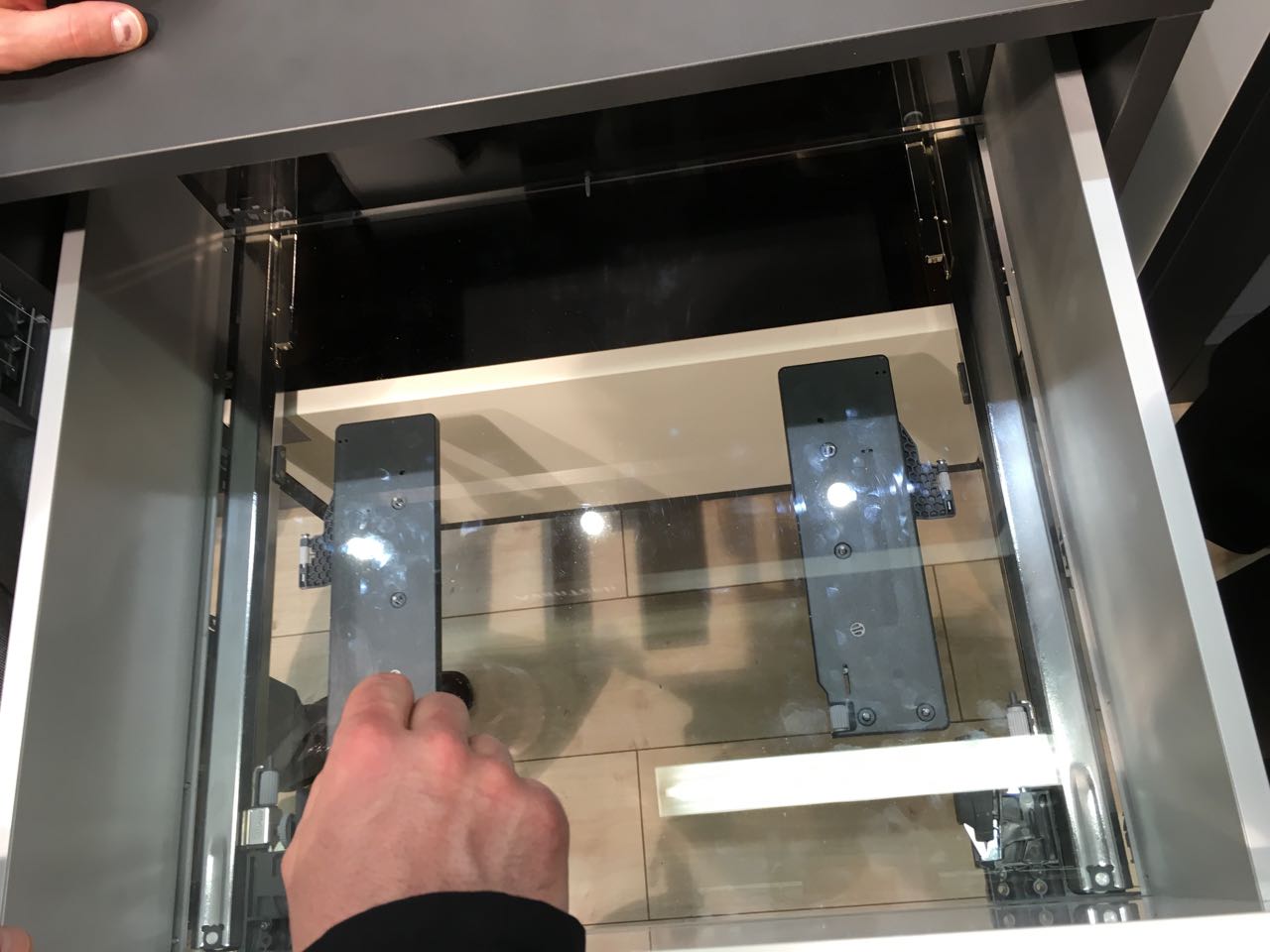 Besonders interessant fand ich die neuen Schubladenführungen Quadro4D. Diese besitzen sehr vielfältige Einstellmöglichkeiten sodass Fertigungstoleranzen in einem weiten Bereich wieder ausgeglichen werden können. Gerade für innenliegende Schubladenfronten eine überlegenswerte Sache.