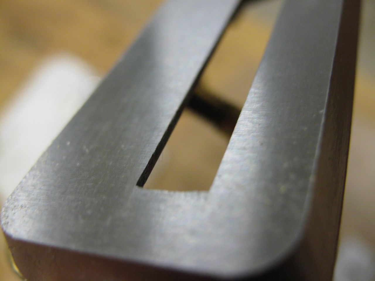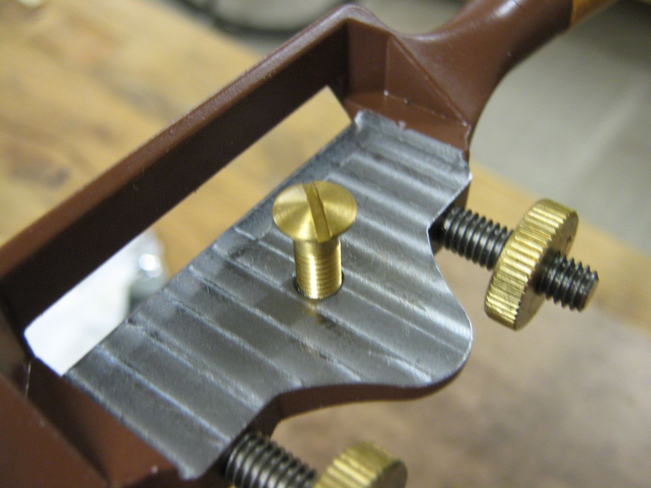Die Auflagefläche der Klinge ist sauber gearbeitet, nichts wackelt oder rutscht – alles sitzt fest. Die Schrauben aus Messing laufen anfangs ein wenig schwer, aber nach ein paar mal hin- und herdrehen läuft alles ganz glatt.
