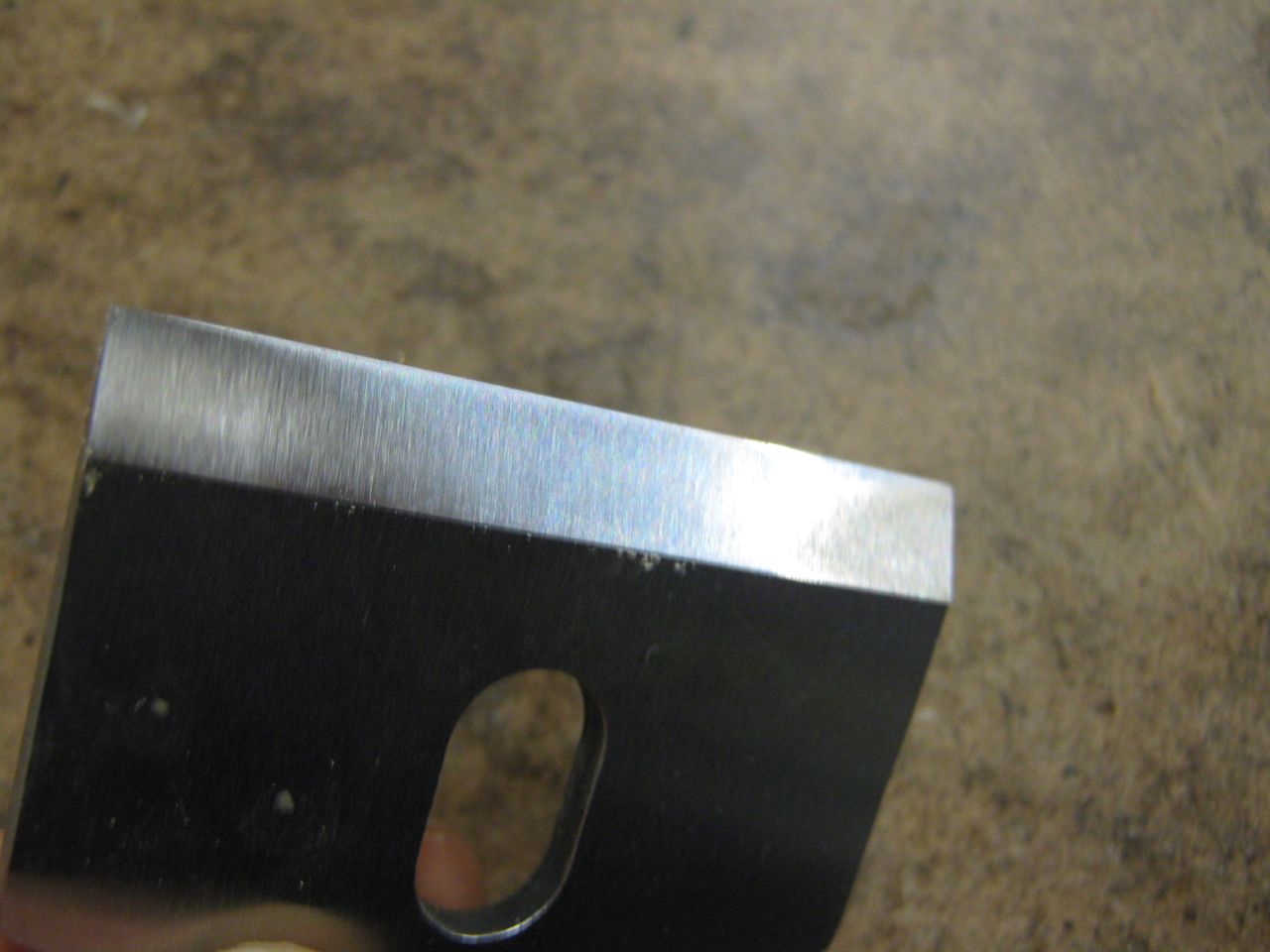 Ich habe die Rückseite mit dem 6000er Stein poliert und dann die Schneide mit dem gleichen Stein abgezogen. Die Klinge ist sehr kurz, daher konnte ich nicht meine übliche Schleifführung benutzen. Statt dessen habe ich freihand geschliffen.