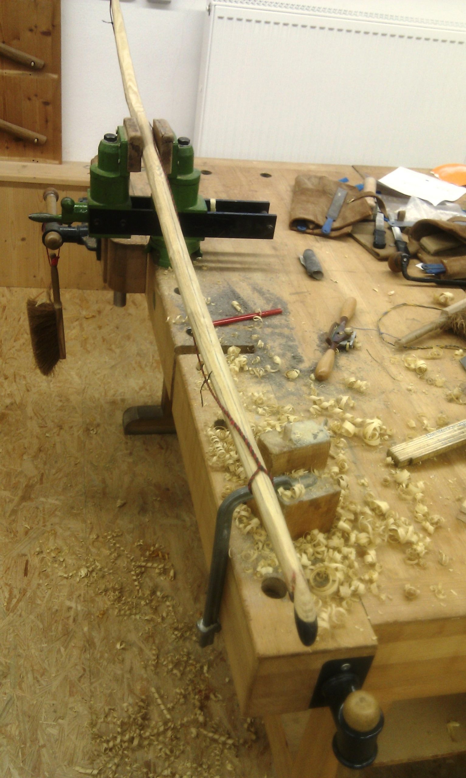 Felix hat einen 2-Meter-Langbogen aus Robinienholz (Falsche Akazie) und 6 Pfeile in diesem Kurs gebaut.