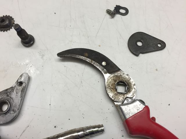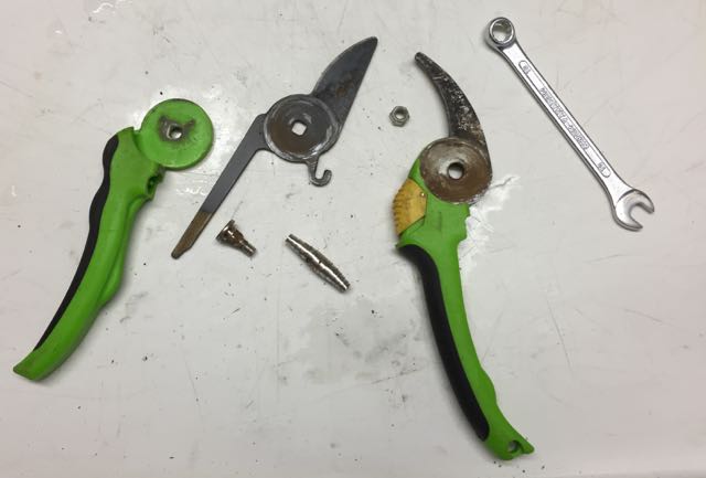 Anschließend kann man bei allen mir bekannten Gartenscheren die Schneide aus dem Griff herauslösen.