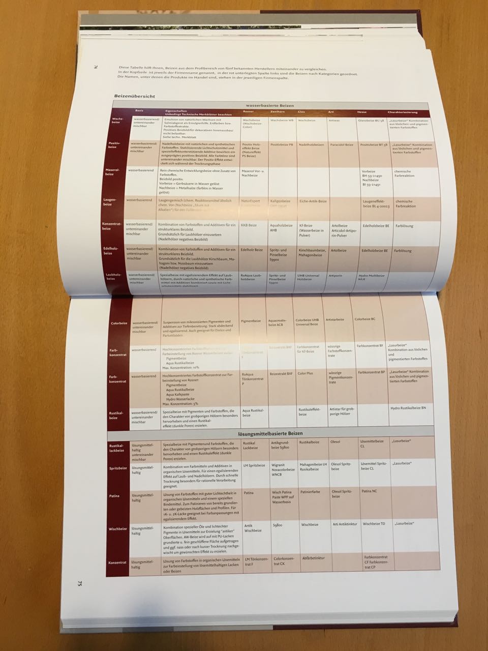 Mit dem Thema Beizen geht es in Kapitel 4 weiter. Was ist Beizen, woraus ist eine Beize gemacht, wann ist Beizen die richtige Methode der Oberflächenbehandlung? In diesem Kapitel werden alle diese Fragen umfassend beantwortet. Ausführliche Tabellen geben hier einen sehr guten Überblick.