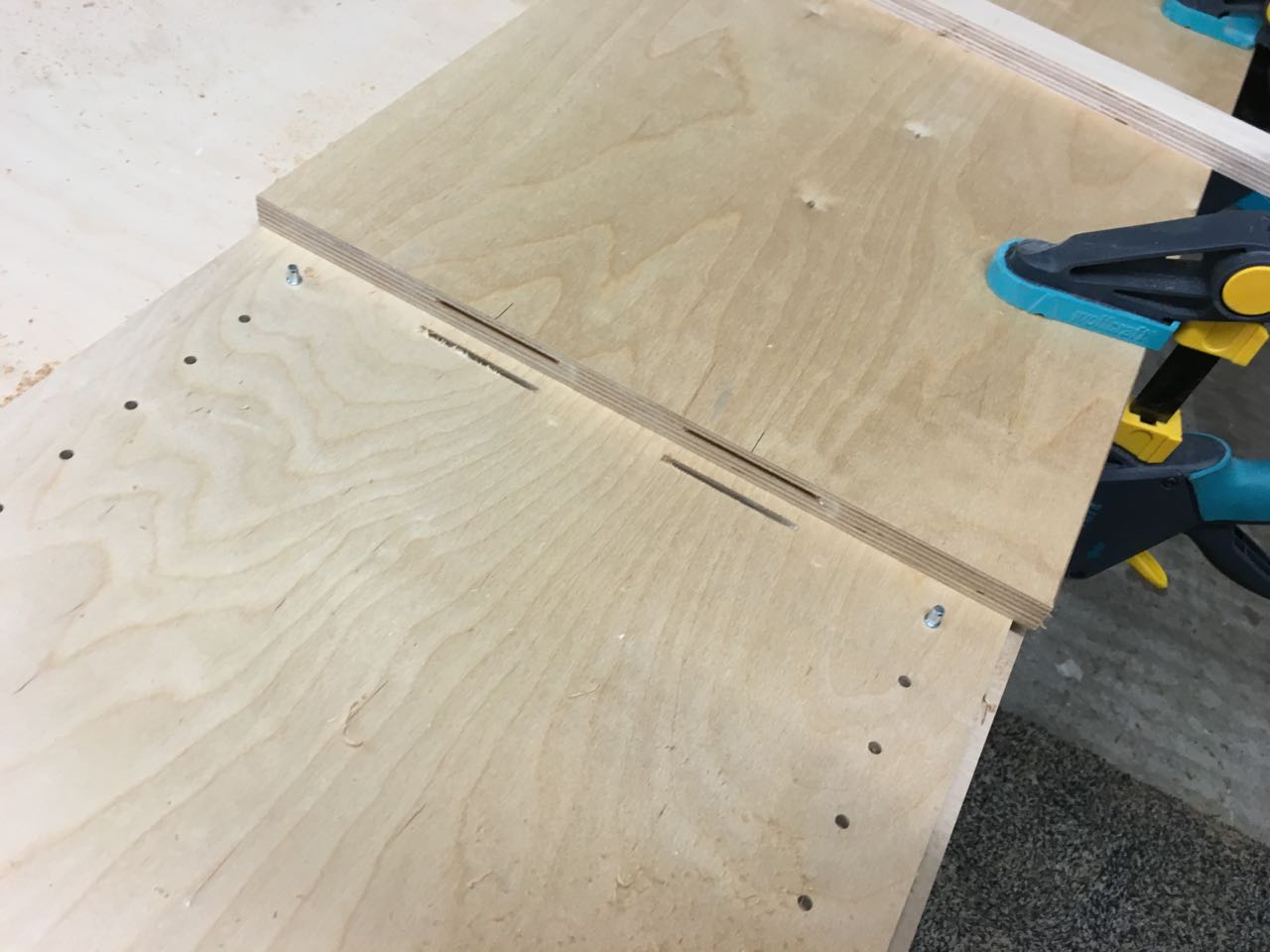 Nachdem alle Teile bearbeitet sind, erfolgt ein Testaufbau und das Bohren der Löcher für die Confirmatschrauben.