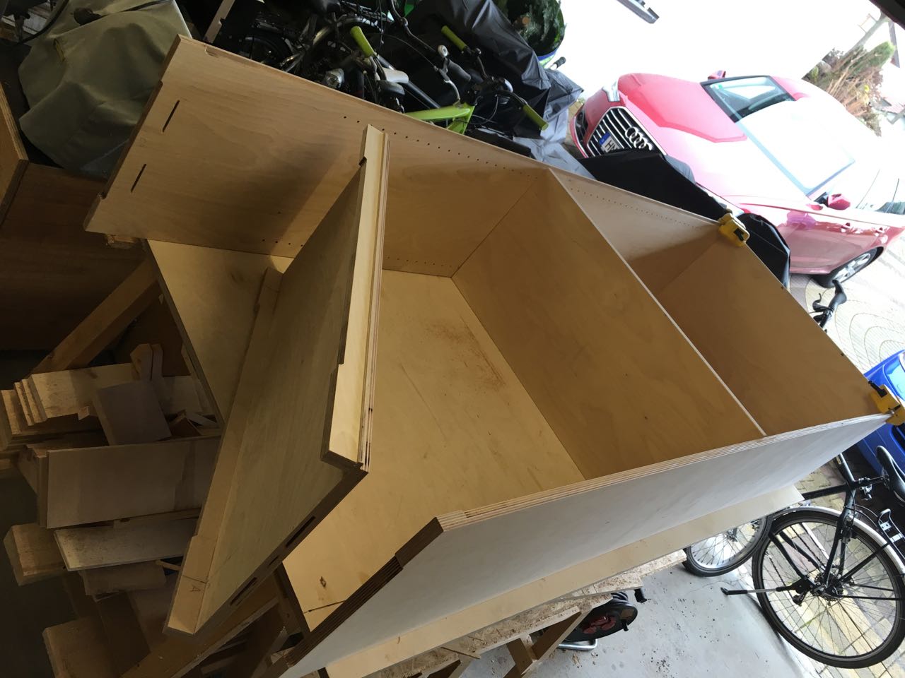 Als Material wurde 18mm Birkenmultiplex gewählt. Das ist hinreichend preiswert, sehr stabil und problemlos beim Holzhändler zu haben.