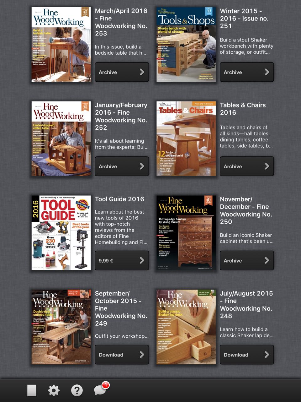 Die Android App der Fine Woodworking ist übrigens (zumindest auf meinen Geräten) absolut furchtbar und instabil. Daher bin ich froh, dass ich auch die Printausgabe bekomme. So muss ich mir nicht extra noch Apfel- Tablett kaufen 🙂
