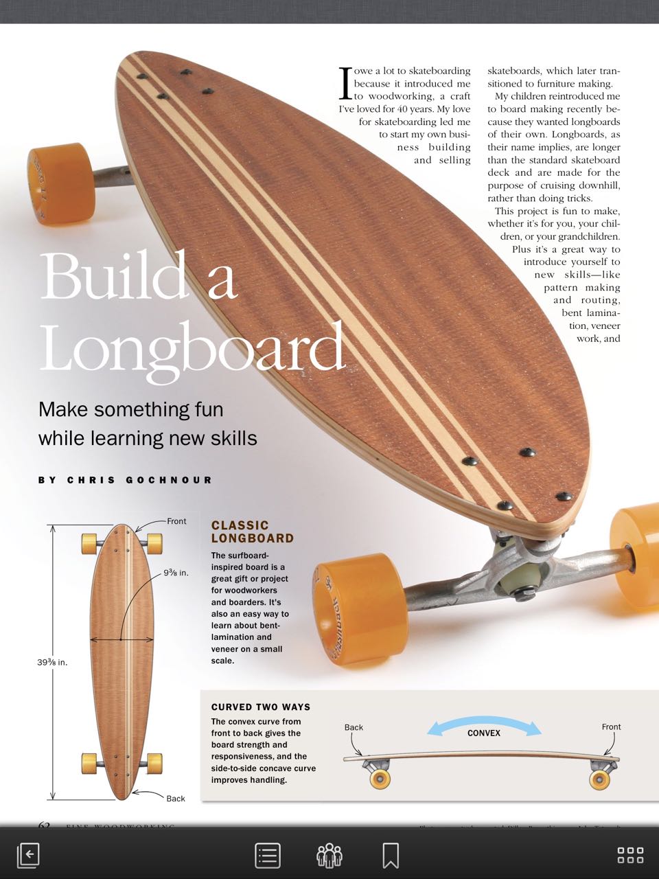 Was mir aber an der Fine Woodworking am besten gefällt, ist das breite Spektrum an Holzwerkerthemen das hier behandelt wird. Als ein Beispiel sei hier das Projekt zum Bau eines Logboards im aktuellen Heft genannt.