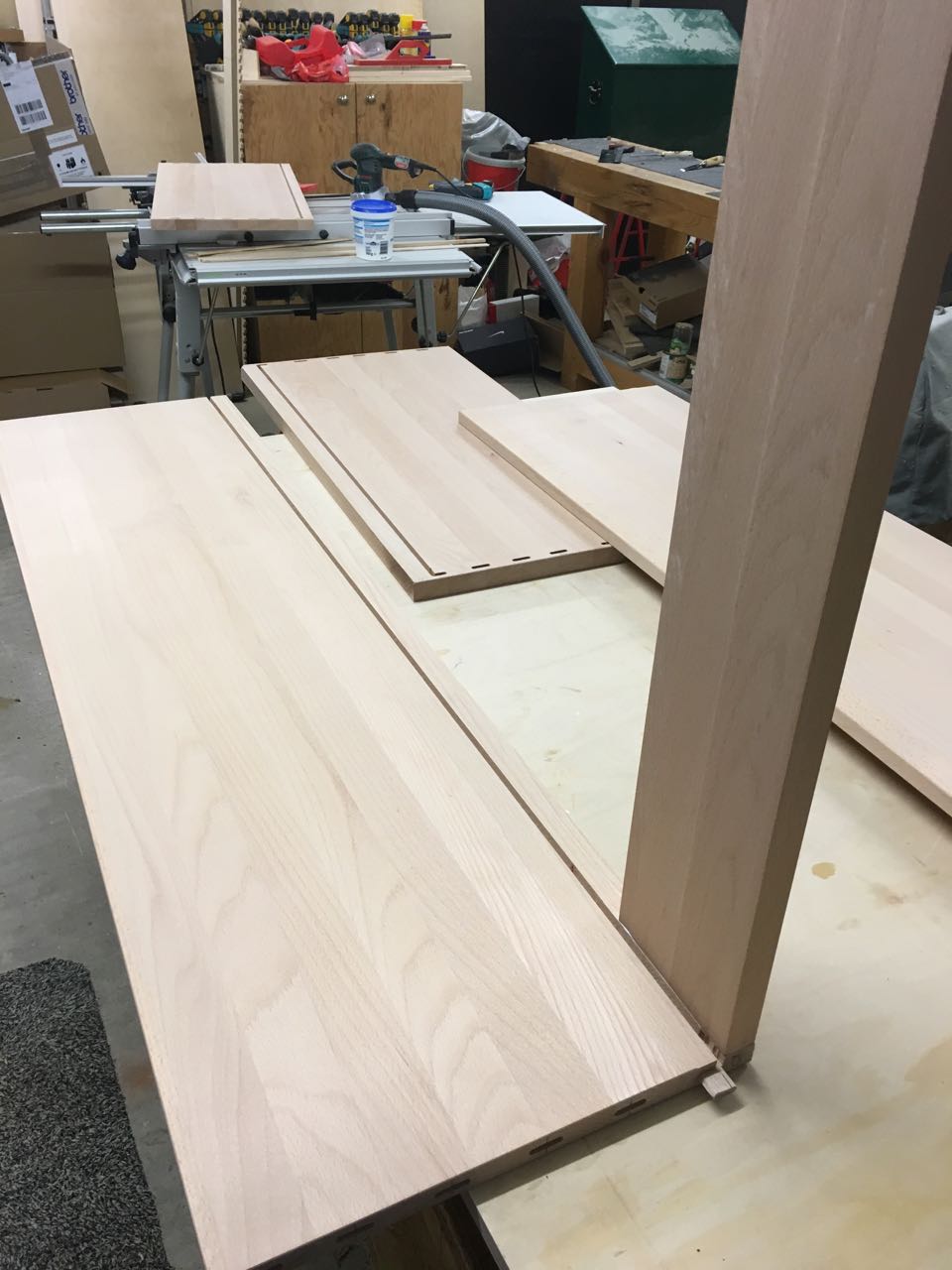 Nachdem die Verleimung dieses ersten Schrittes getrocknet war, konnte der Zuschnitt der Rückwand erfolgen. Ich habe diesen Schritt erst nach dem Verleimen des Korpus gemacht, da ich so die genauen Maße der Rückwand ermitteln kann.