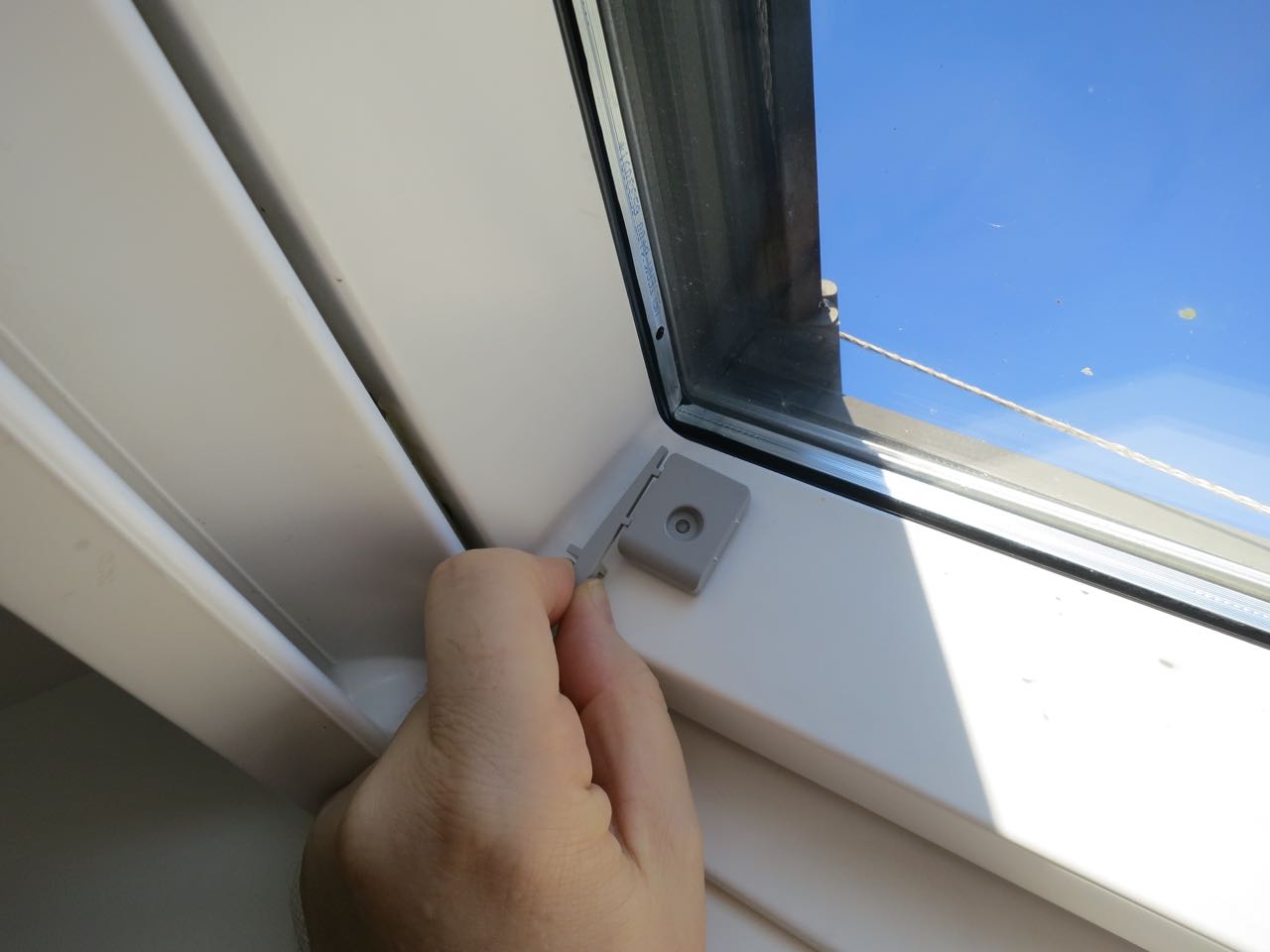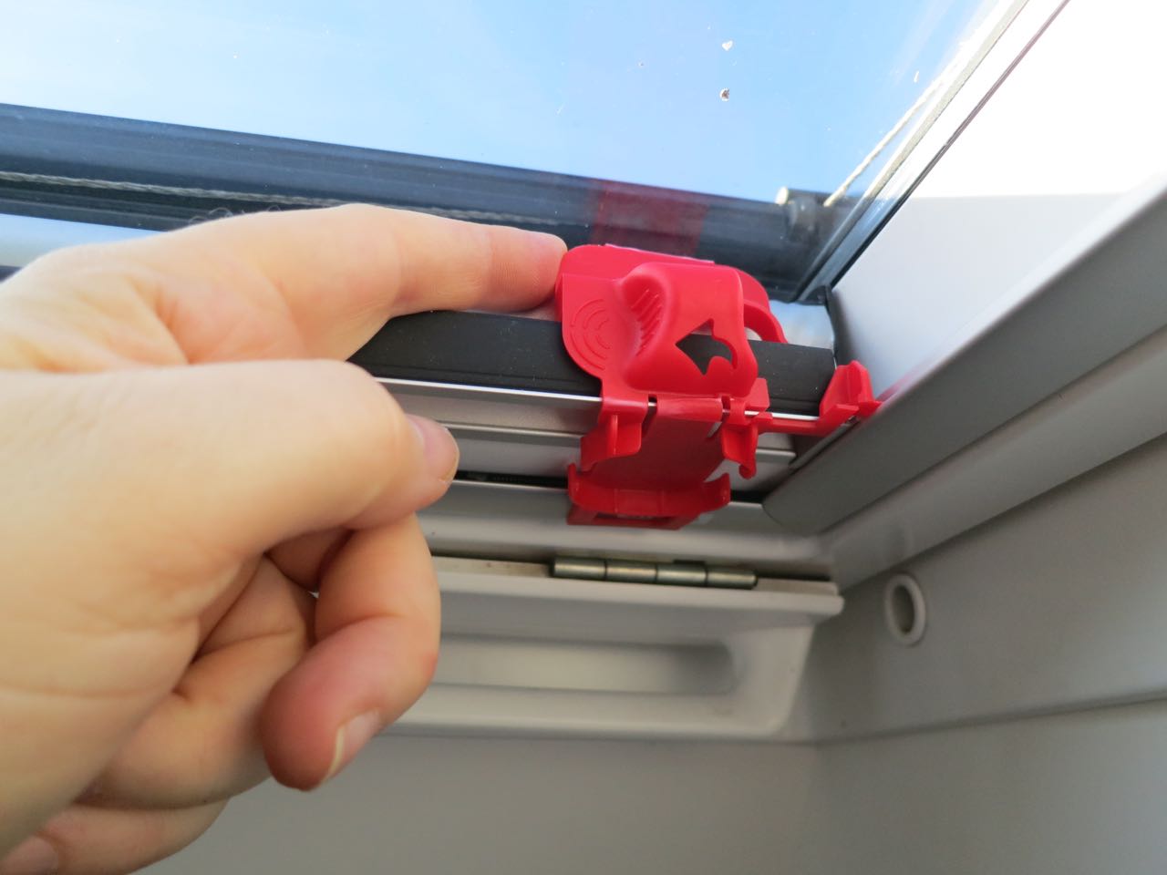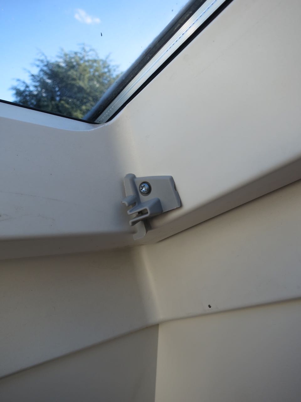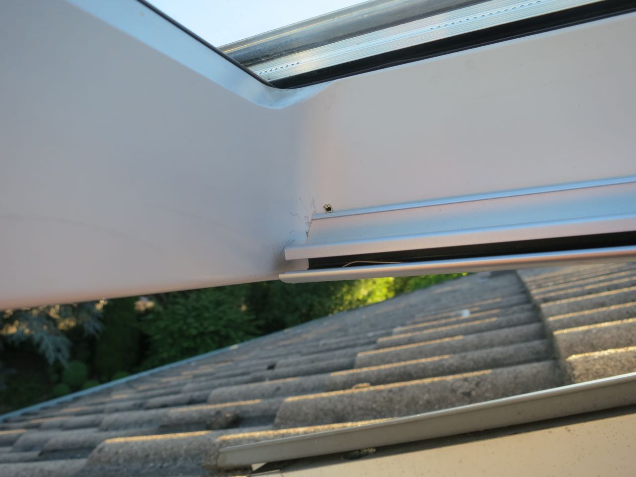 - Die oberen Halter des Verdunkelungsrollo sind ein wenig zu tief montiert. Man erkennt es am LIchtspalt oben. Der Grund sind die abgerundeten Ecken des Fensterrahmens. Das ganze müßte ein wenig weiter nach oben.
