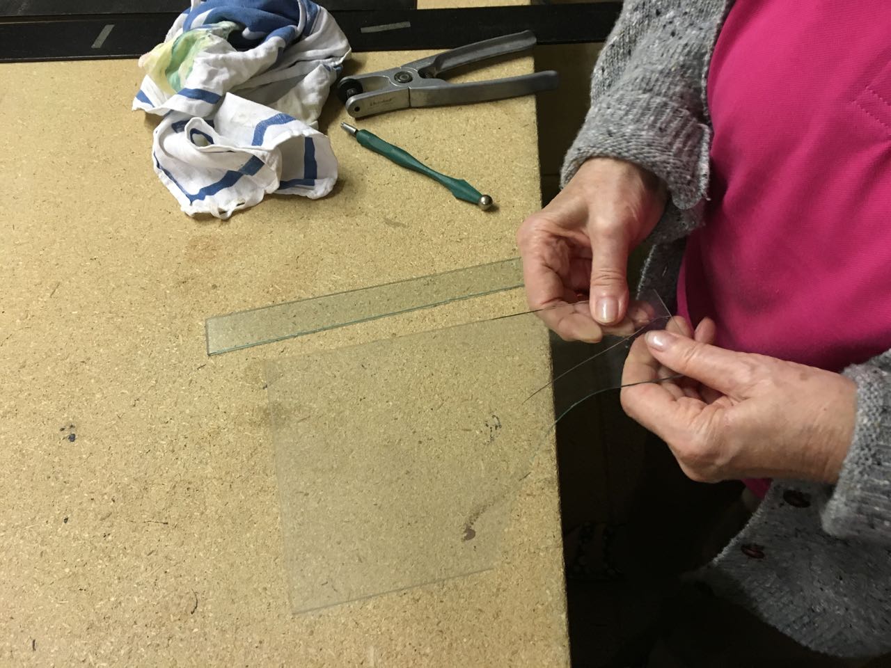 Gerade Glas mit einer Oberflächenstruktur hat immer gewisse innere Spannungen – da ist das saubere Anritzen wichtig, damit der Bruch nicht plötzlich quer läuft.