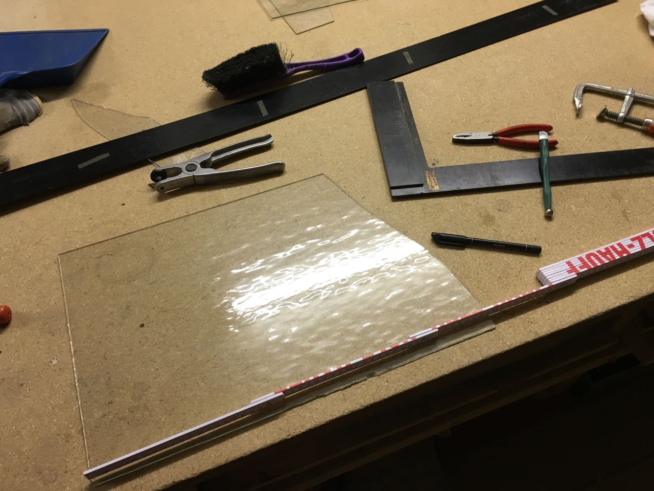 Ich habe an den fertigen Rahmen die Maße abgenommen und die Glasplatten mit 2-3mm Untermaß zugeschnitten.