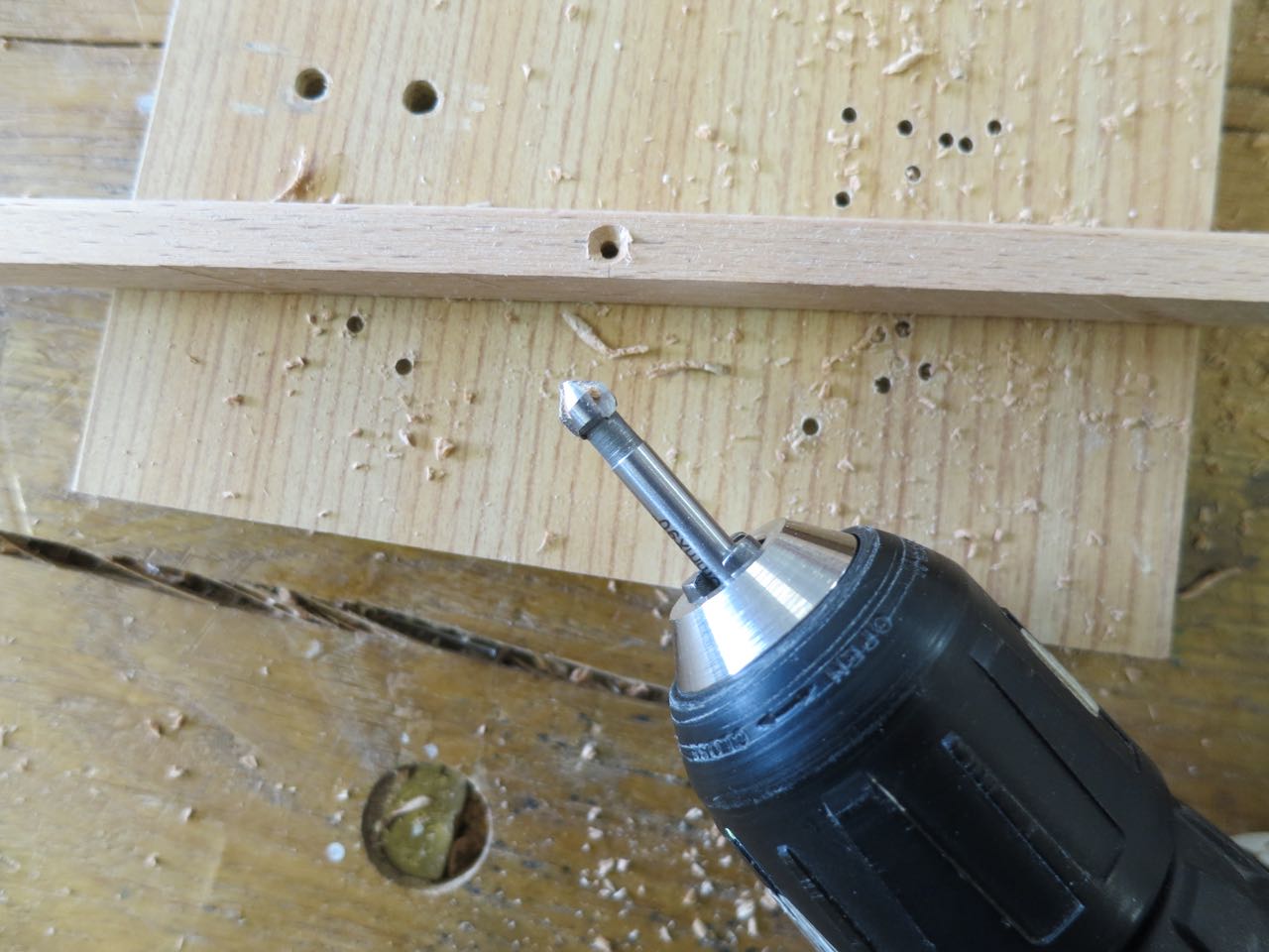 Da die Leisten später verschraubt werden sollen, habe ich diese mit 2,5mm Bohrungen versehen, die anschließend mit einem kleinen Senker angefast wurden.
