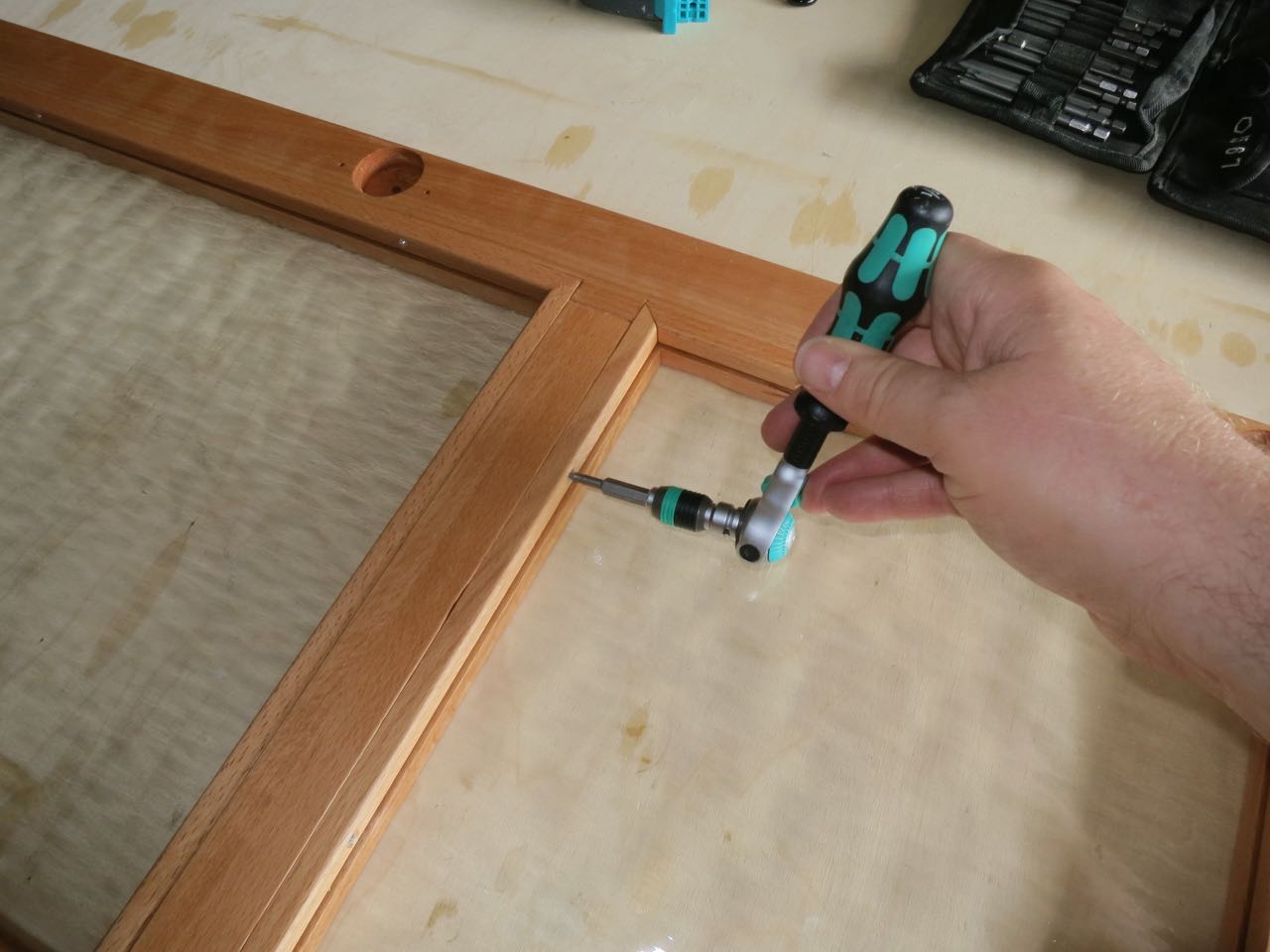 Ich habe mich dafür entschieden, die Glasleisten nicht zu nageln, wie dies im klassischen Vitrienbau gemacht wird, sondern diese stattdessen zu verschrauben.