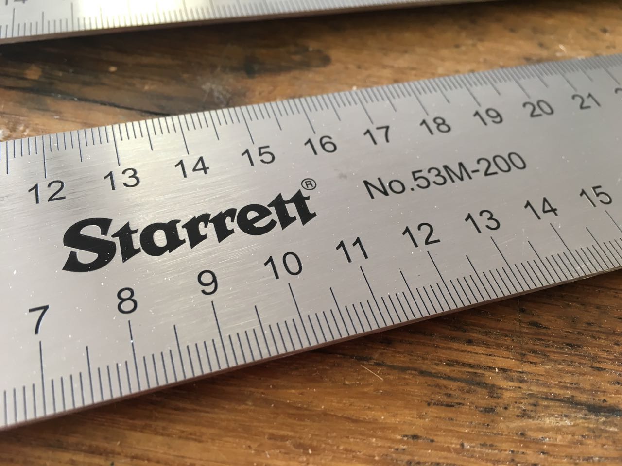 Ich habe heute bei einem Bekannten seinen 200mm und 300mm Starrett Winkel angeschaut. Die Skala des 200mm Winkels ist perferkt, der 300er hat ca. 2/10mm Versatz. Es gibt hier also eine gewisse Serienstrueung.