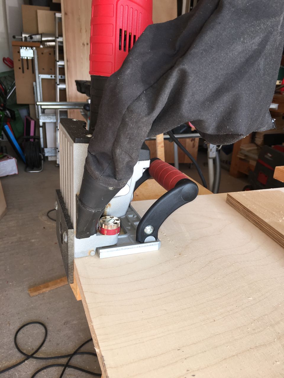 Flachdübelschlitze entlang der Kante von großen Platten zu fräsen ist damit ein Kinderspiel.