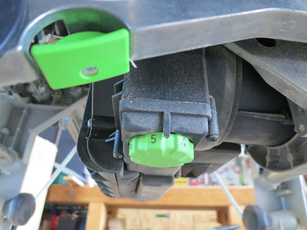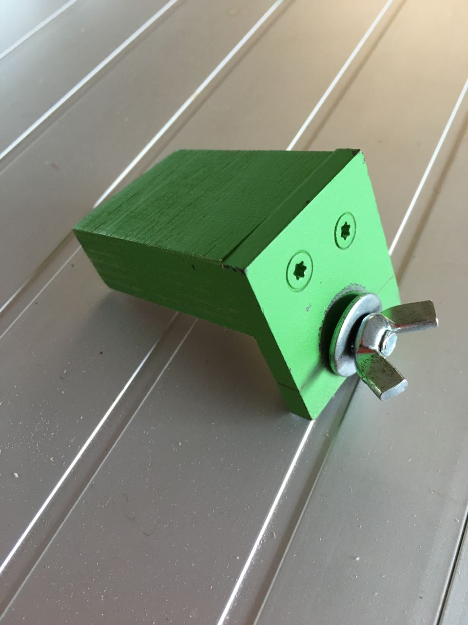 Ich habe den Stopp-Anschlag dann noch leuchtgrün lackiert damit es leicher in der Werkstatt zu finden ist. Solche kleinen Teile haben nämlich die Angewohnheit, sich ganz unauffällig zu auf der Werkbank „verstecken“, wenn sie gebraucht werden.