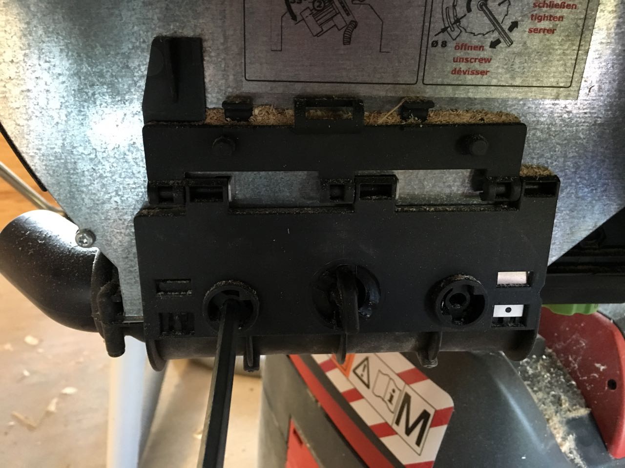 Wenn sich plötzlich unter der CS-70 das Sägemehl ansammelt und der angeschlossene Staubsauger scheinbar nicht mehr wirkt, dann bietet sich dieses Bild: