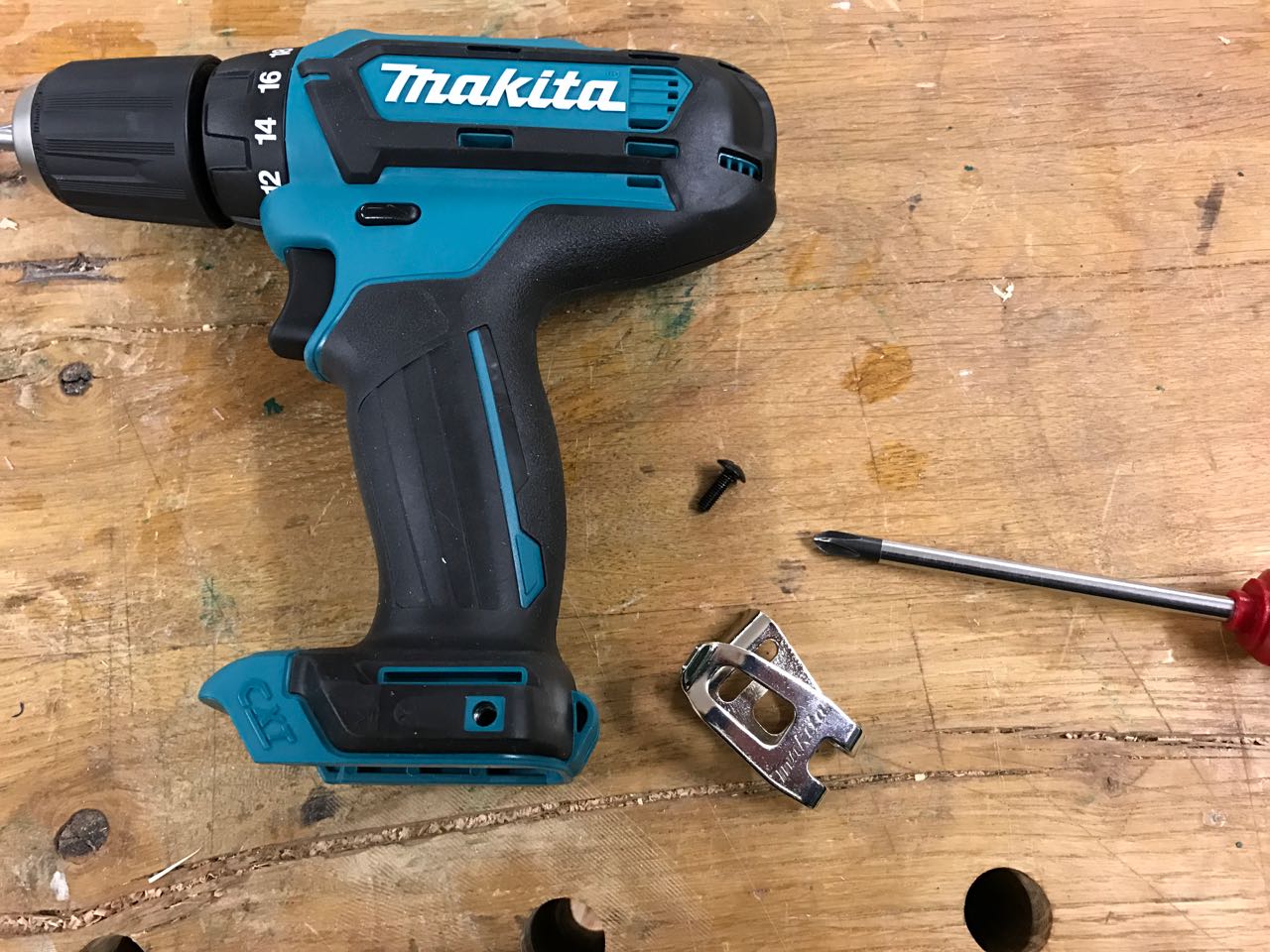Was mich allerdings sehr schnell gestört hat, war der Gürtelhaken an der Maschine. Durch den großen Akku ist die DF331 unten eh schon ein wenig breit, wenn man z.B. in einem Schaubladenfach die Beschläge verschrauben möchte.