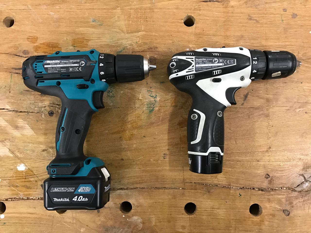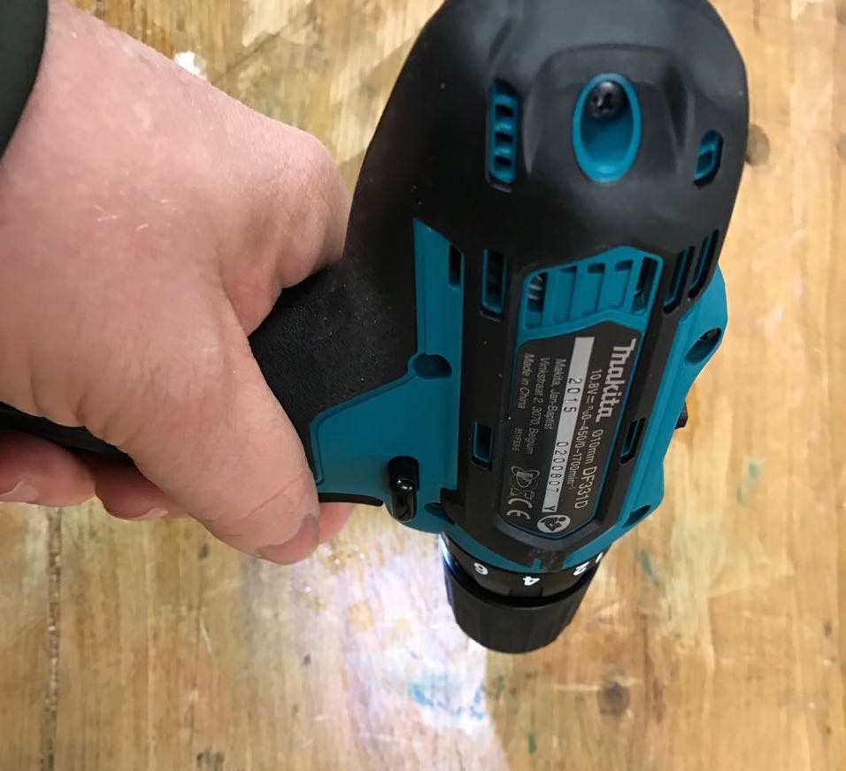 Bisher habe ich beim Möbelbau überwiegend mit dem Akkuschrauber Makita DF330 gearbeitet – ebenfalls ein Gerät der 10,8V Klasse. Ich habe diese Maschine im Jahr 2009 gekauft, weil es damals bei meinem Werkzeughändler der handlichste Akkuschrauber mit einem Spannfutter war, das auch auf Null schließt.