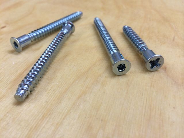 Spezialschraube zum Befestigen von Möbelbeschlägen wie z.B. Schubladenführungen im System32 Raster. Erleichtert das Leben bei der Montage und kann erstaunlich hohe Lasten aufnehmen, gerade auch beim Eindrehen in Spanplatte oder OSB-Platten.