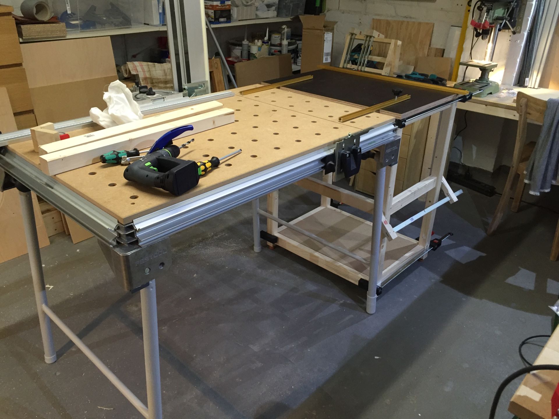 Der Frästisch ist von seinem Abmessungen her so gebaut, dass Benjamin diesen an seinen Festool MFT andocken kann. Hier zwei Bilder vom Bau.