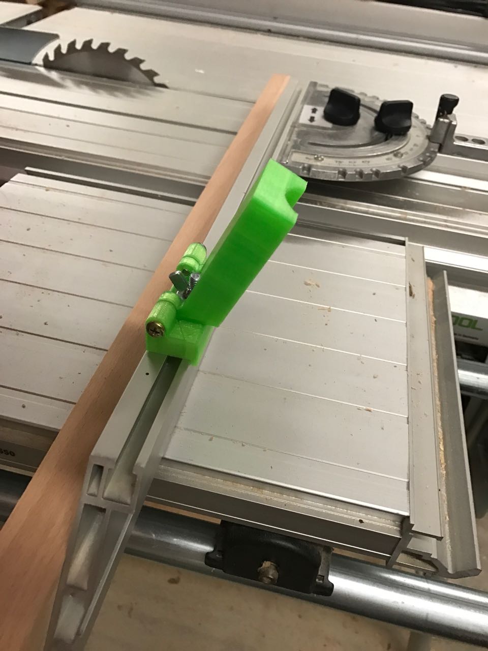 Dieser Reiter passt übrigens auch auf den Anschlag des Festool MFT Tisches und ebenso bei einigen der Kappex-Sägen.