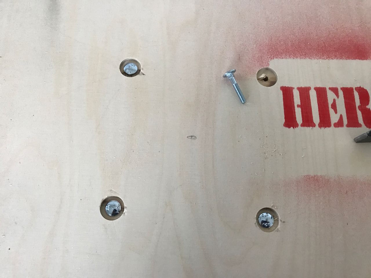 So konnten die M5-Schloßschrauben bündig eingeschlagen werden, die dann dank ihres vierkantigen Schaftes sich verklemmen und nicht mehr herausfallen können.