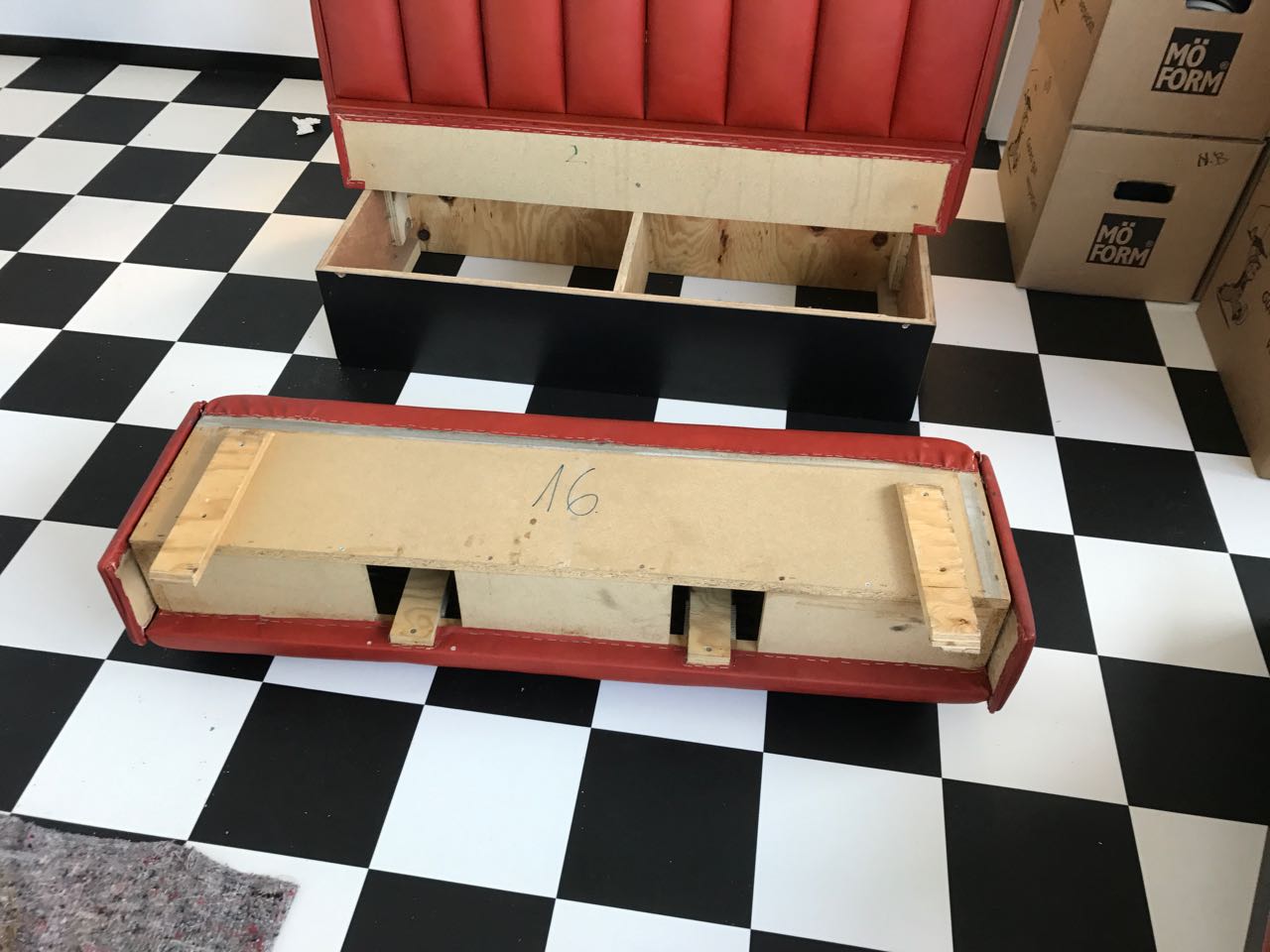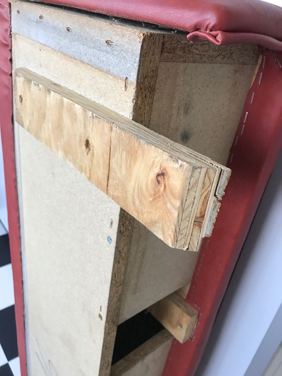 Die Polster sind auf Spanplatten getackert und waren durch den Transport ein wenig lose geworden. Das Problem konnte aber durch das gezielte Setzen einiger Spax-Schrauben behoben werden.