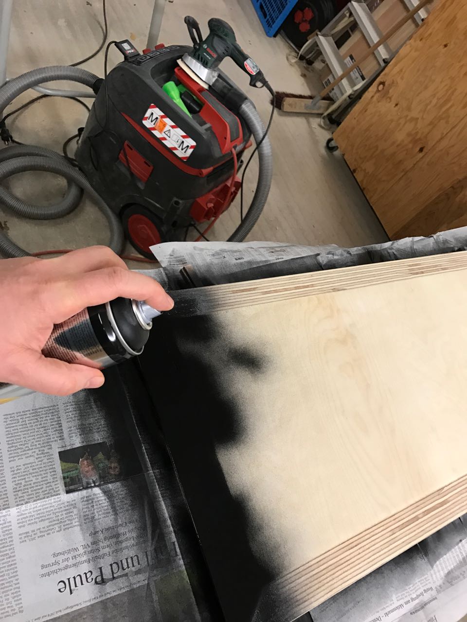 Danach sind die Platten fertig für die Lackierung. Aus Zeitgründen haben ich hierfür auf einen hochwertigen Lack aus der Sprühdose zurückgegriffen – Duplicolor Premium in Schwarz seidenmatt.