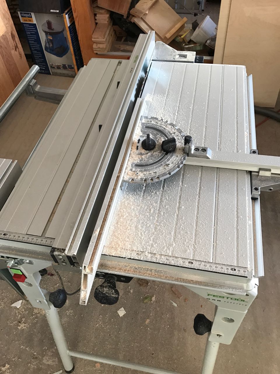 Hier zeige ich wie ich das mit meiner Festool CS70 Tischkreissäge gemacht habe.