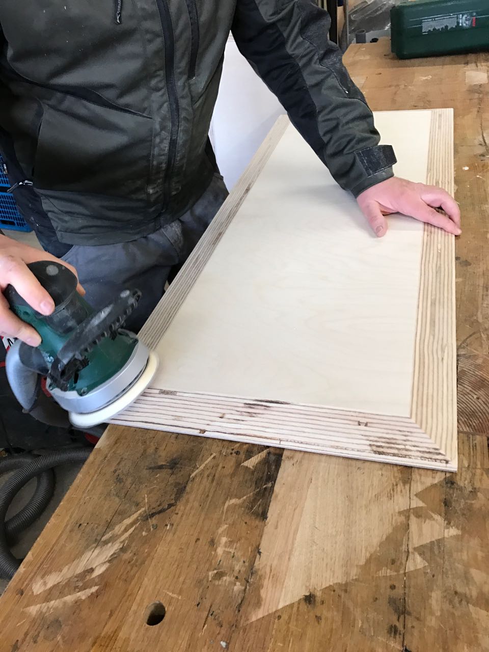 Zum Schluß werden die Schnittflächen noch mit dem Rotationsschleifer und 80er Paper geglättet.