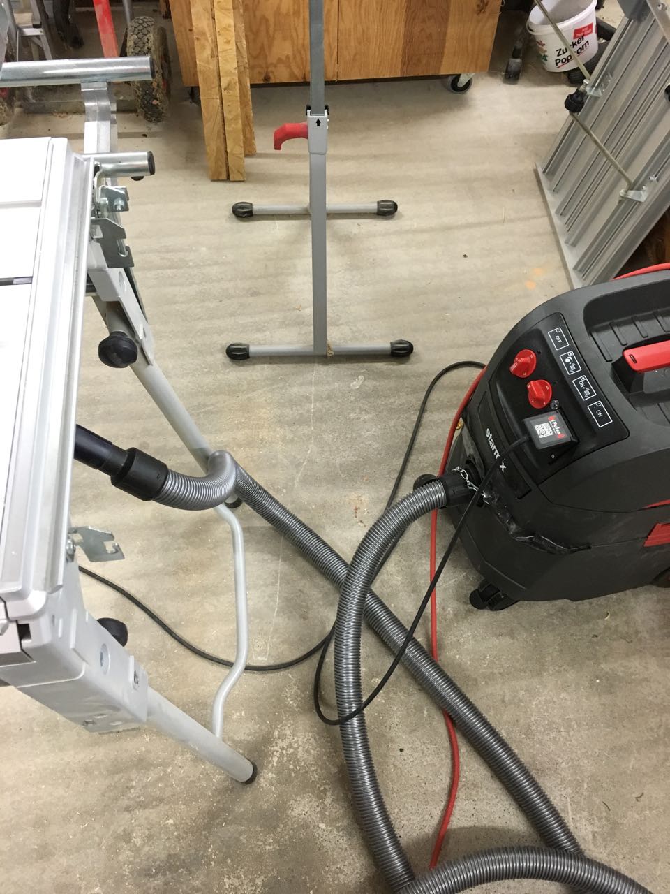 ich habe einen Mafell Staubsauger ( Starmix wie ich jetzt weis ) an den ich einen Festool Schlauch mit Textil Ummantelung adaptiert habe. Der Bajonetanschluss gab es bei Ebay für ca: 10 Euro.