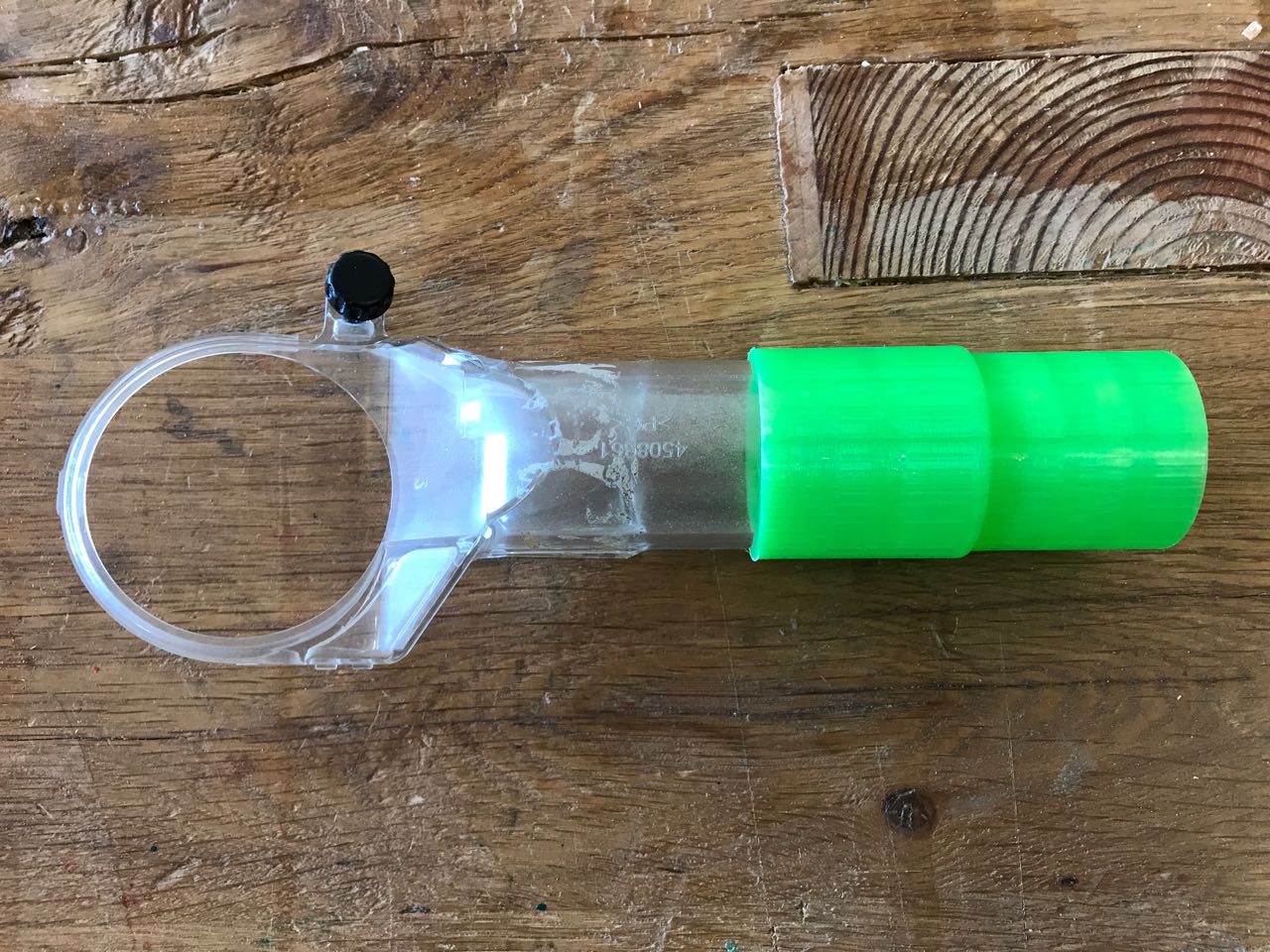 Hier noch ein weiteres Zubehörteil für den Staubsauger, das ich mit dem 3D-Drucker angefertigt habe – eine besonders kurze Fugendüse. Diese ist immer dann hilfreich, wenn man in besonders beengten Verhältnissen saugen möchte.