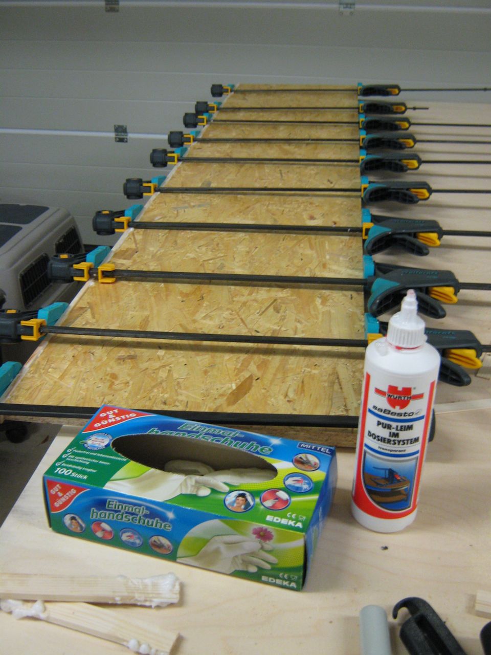 Ich betrachte hier einmal die drei elementarsten Risiken beim Holzwerken – umherfliegende Partikel, Lärm und hautschädliche Substanzen. Das bedeutet für mich den Einsatz von Schutzbrille, Gehörschutz und Handschuhen.