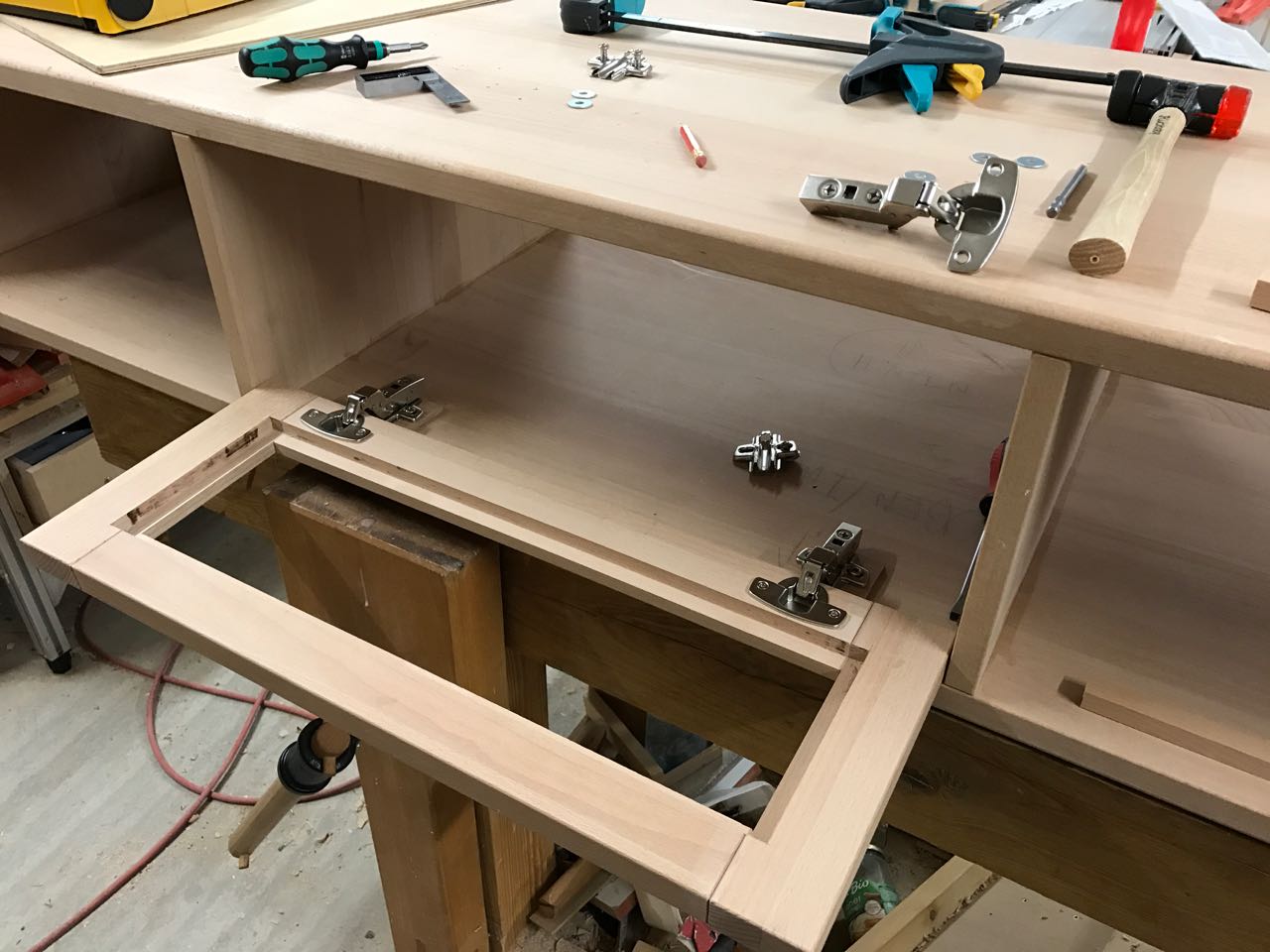 Also wird hier die Arbeit am TV-LowBoard erst einmal unterbrochen und es geht erst in der kommeden Woche wieder weiter, wenn die Scharniere eingetroffen sind.