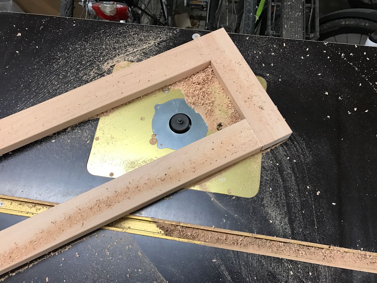 Weiter geht es dann mit dem Fräsen der Falze zur Aufnahme der Glasplatten. Auch hier kommt wieder 4mm starkes Kathedralglas zur Verwendung. Die Falze sind daher 12mm tief und 10mm hoch.
