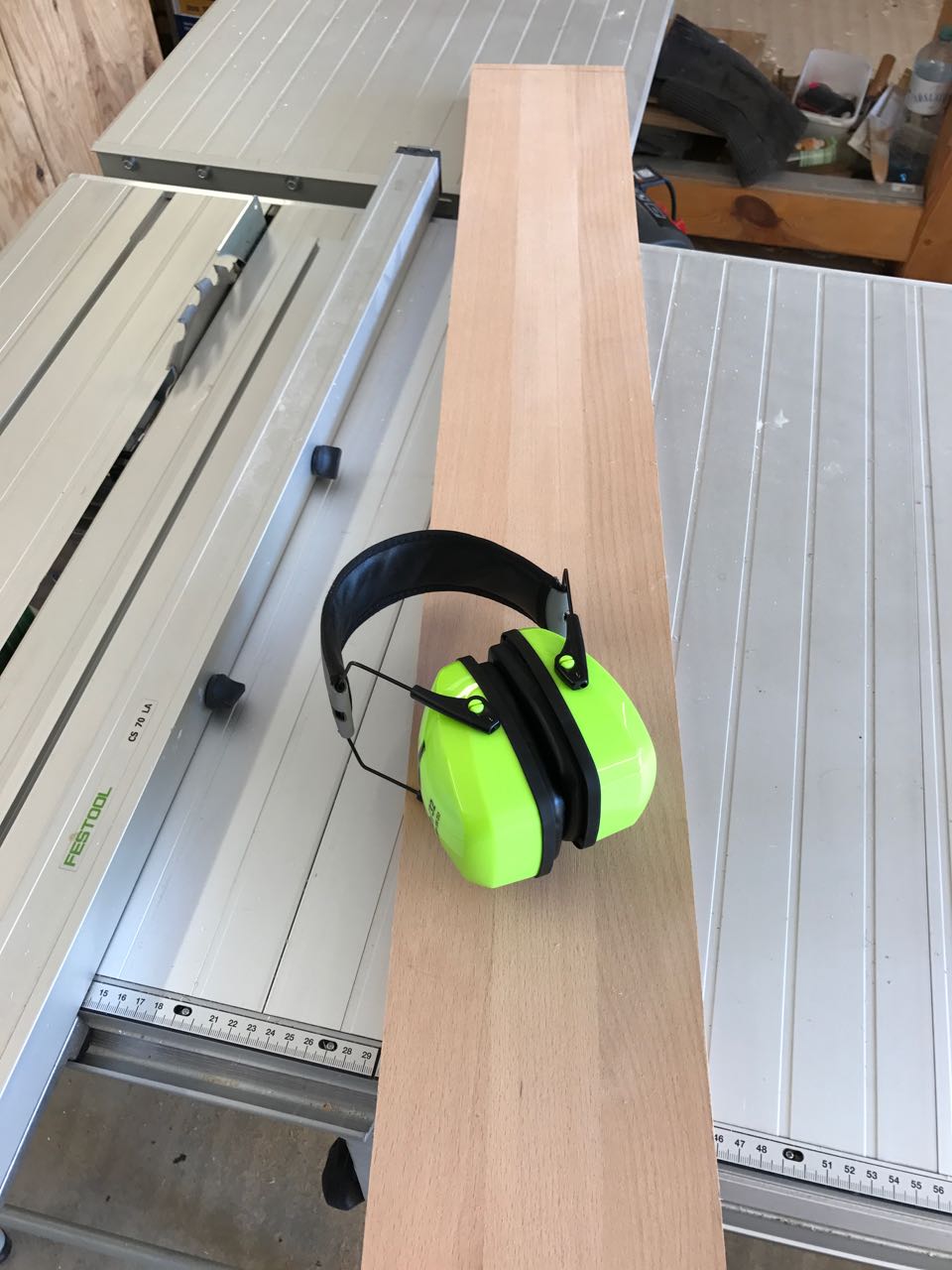 Eine kurze Bestandsaufnahme in der Werkstatt ergab, dass ich noch genügend Leimholz vom Zuschnitt des Glastürenschrankes übrig hatte, mit denen sich eine schöne minimalistische Stehleuchte bauen lässt.