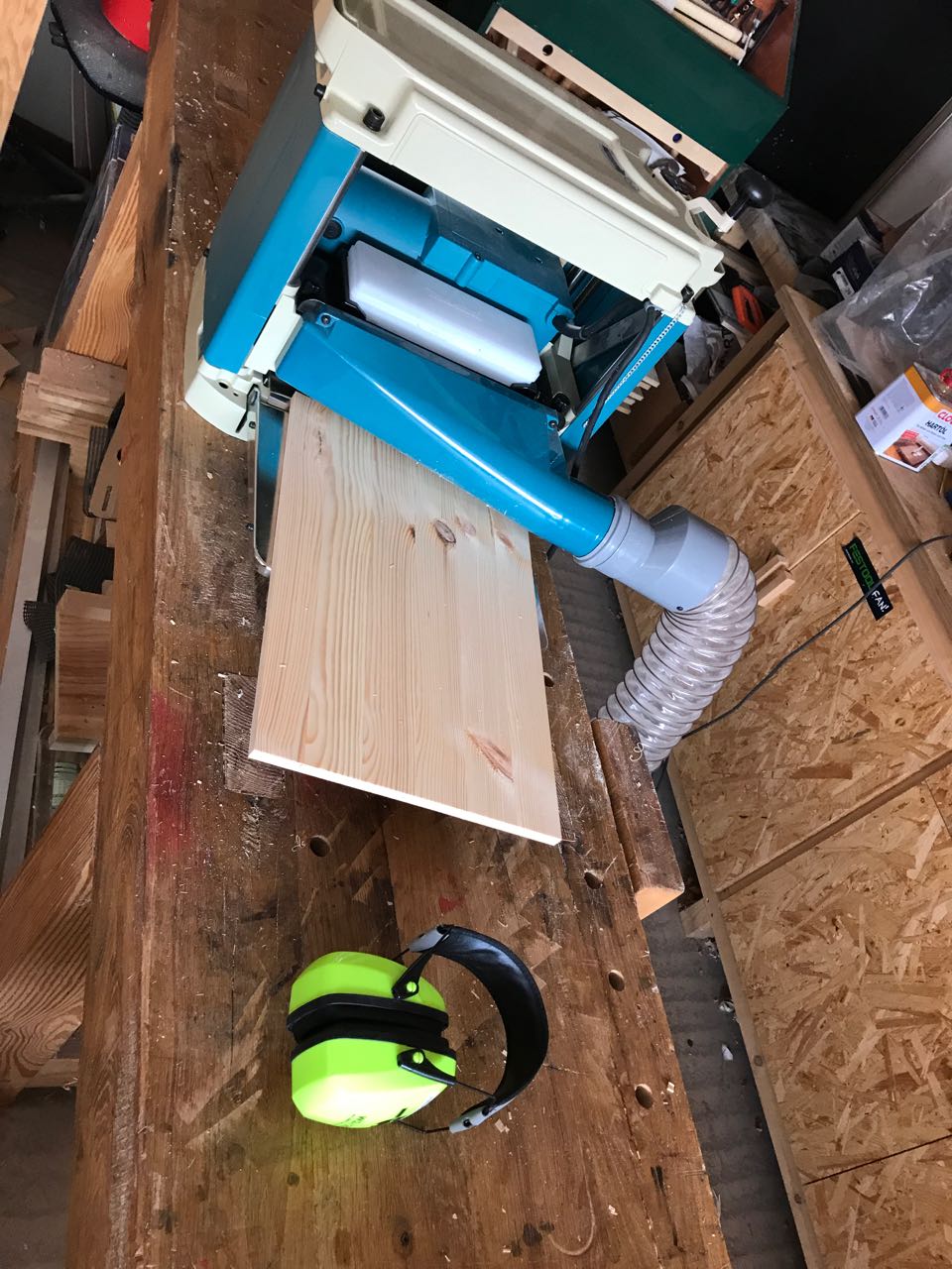 Daher wurden die verbliebenen Bretter auf 30cm Breite zugeschnitten. Warum? Das ist die maximale Breite die mein Makita Dickenhobel verarbeiten kann.