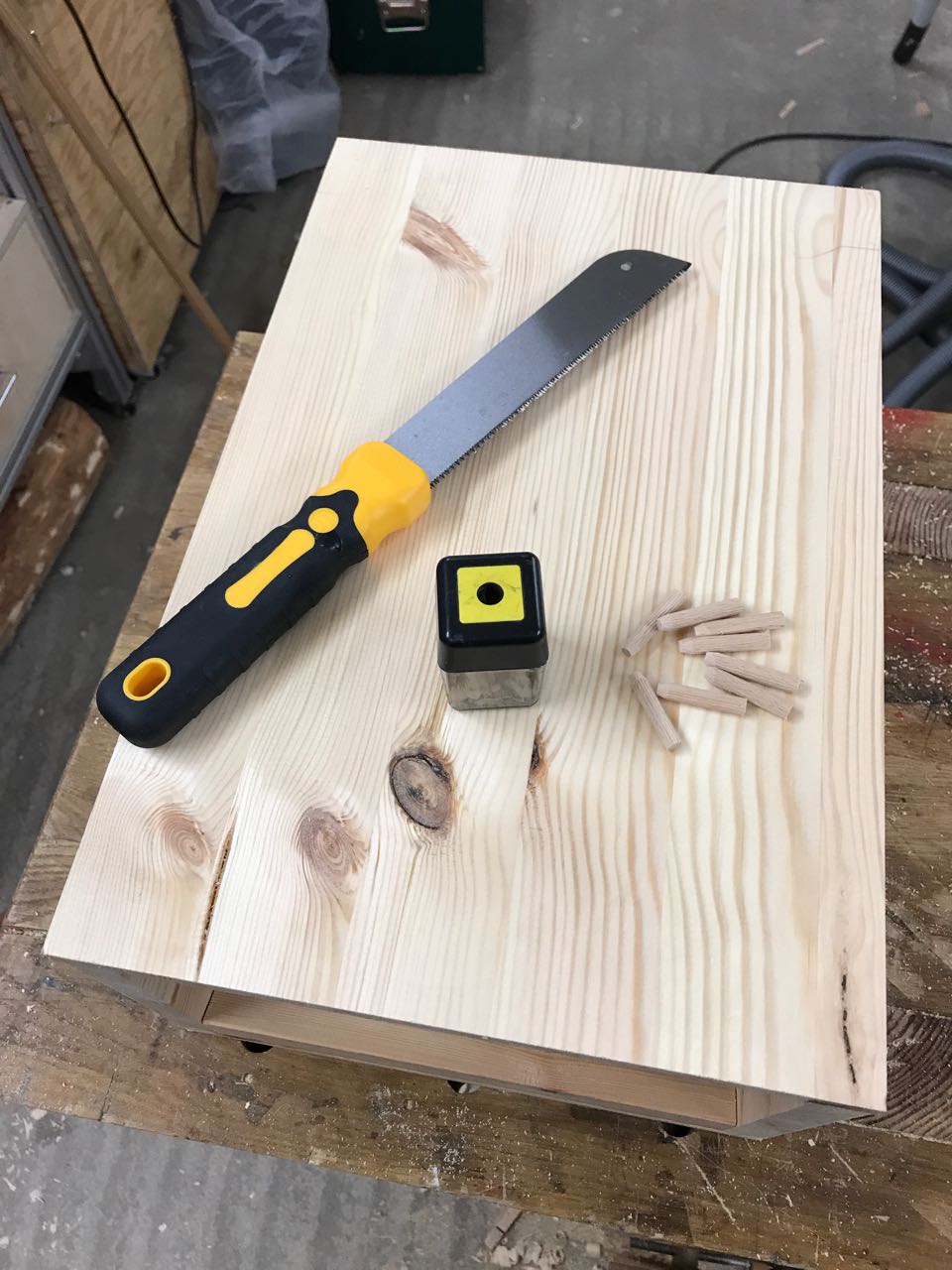 Als Material wäre für so eine japanische Werkzeugkiste eigentlich ein leichtes Holz wie z.B. Pappel ideal, aber es mußte mal wieder schnell gehen. Keine Zeit um zum Holzhändler zu fahren.