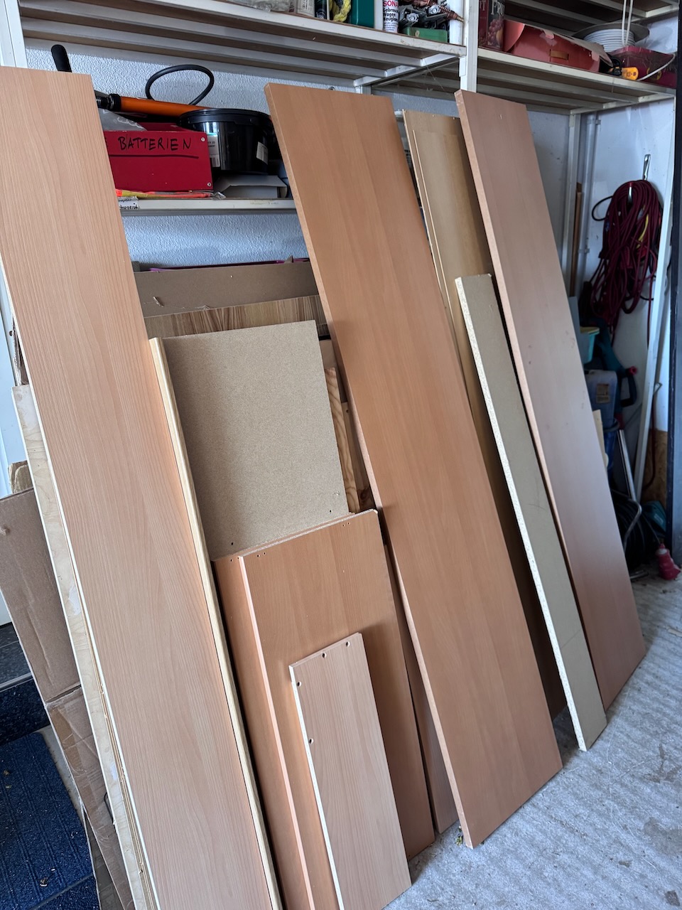 Aber so eine aufwändige Bauweise muss nicht sein. Wir haben auch mehrere MIDI-Frästische aus Spanplatte gebaut. Dabei kamen Materialstärken von 18mm und dicker zum Einsatz. Als Materialquelle sind dabei alte Regalteile oder die Seitenteile von ausgemusterten Schränken ganz hervorragend geeignet.