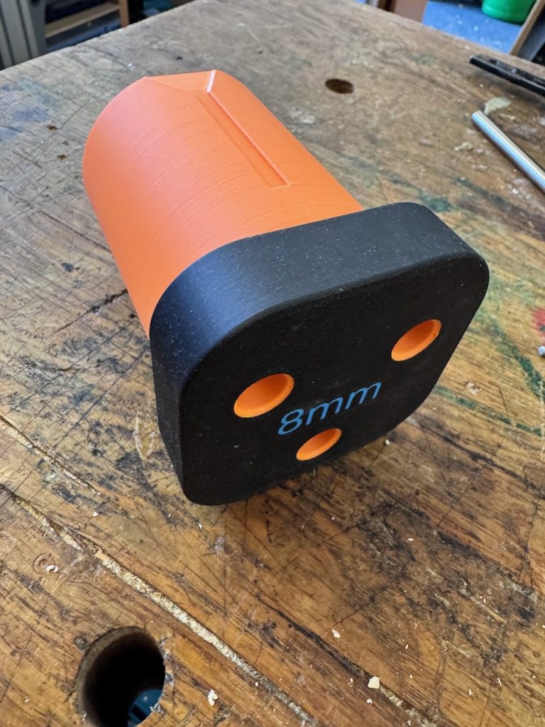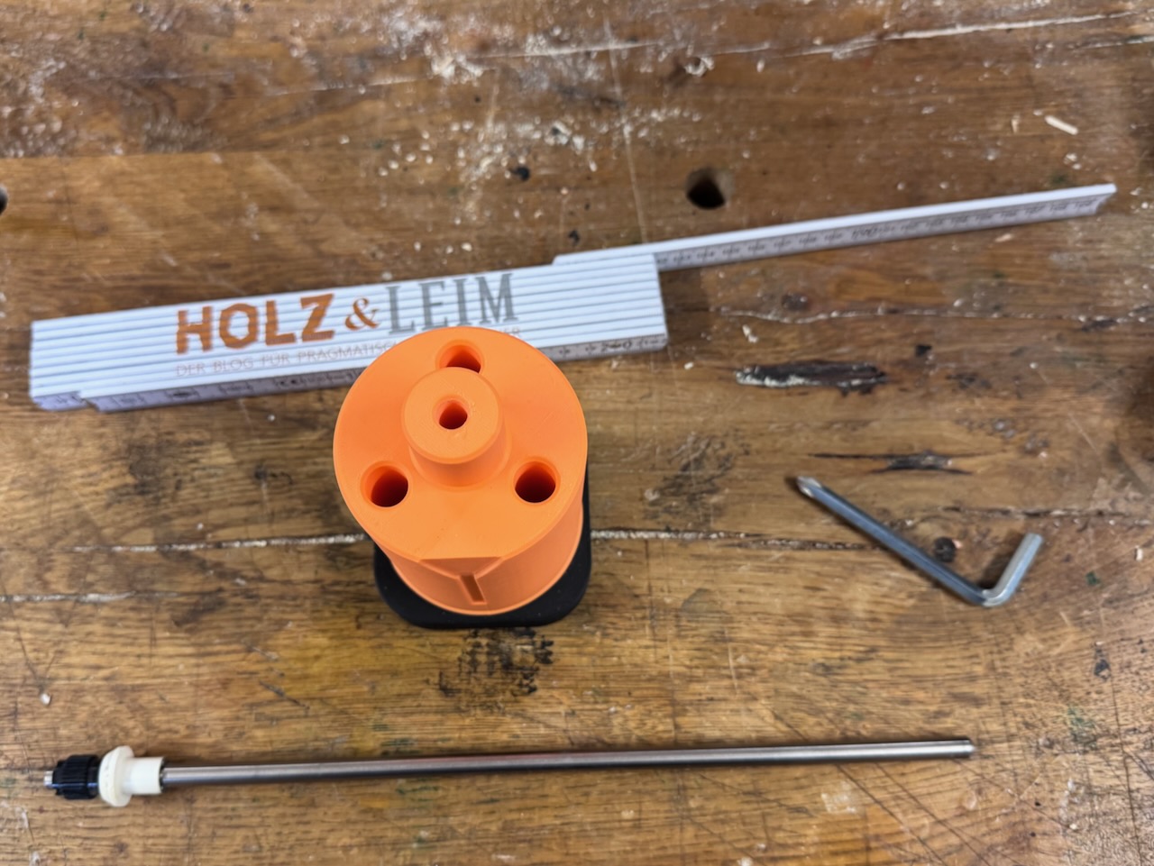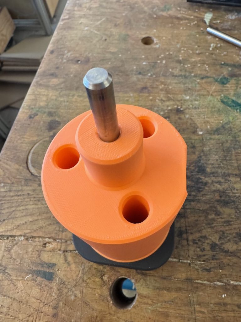 Ein passendes Modell einer solchen Shaper-Dummy-Spindel ist dankenswerter Weise auf der Plattform makerworld.com zu finden – das hier verlinkte Modell ist sogar in etlichen Abmessungen parametrierbar. Somit kann man sich selbst eine STL erzeugen, bei der man Stahlstifte mit dem gewünschten Durchmesser verwenden kann.