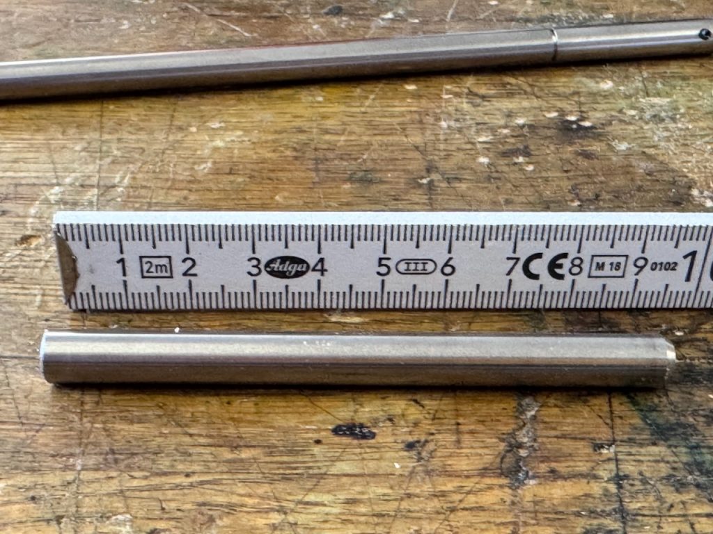 Ich habe danach meinen Fundus an Metallwellen durchsucht, um zu schauen was ich da zu habe. Dabei kam eine 8mm Stahlwelle zum Vorschein, die ich vor langer Zeit beim Zerlegen eines defekten Tintenstrahldruckers ausgeschlachtet hatte.