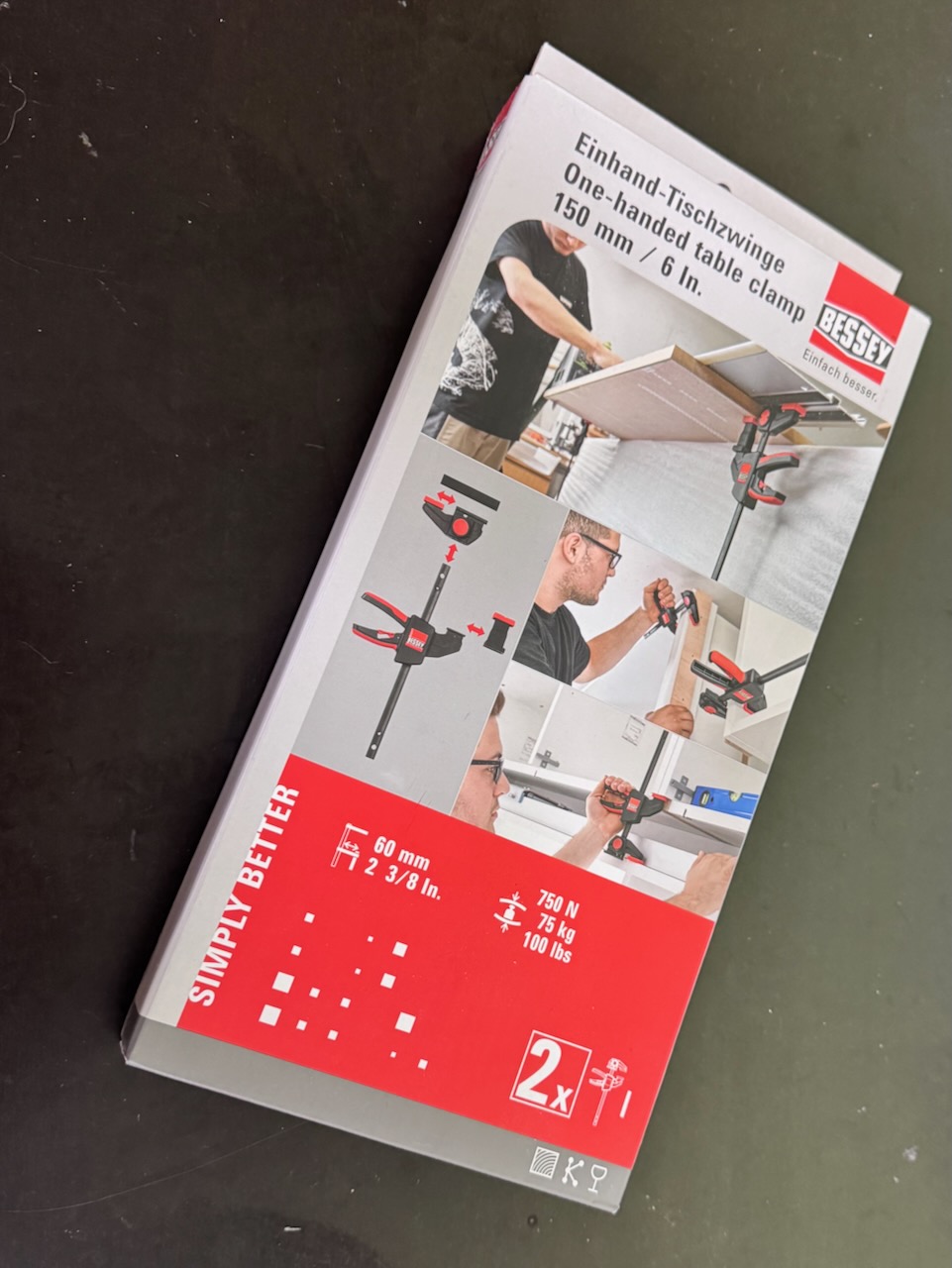 Diese Bessey-Zwingen sind leichter und haben eine für mich deutlich komfortablere Handhabung als die bisher von mir verwendeten Hebelzwingen.