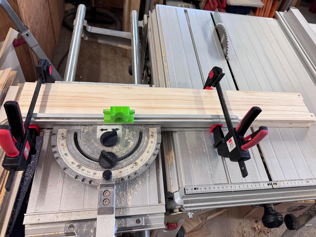 Aber nicht nur für die Führungsschiene sind diese Zwingen nützlich, auch an der Tischkreissäge machen Sie eine gute Figur.