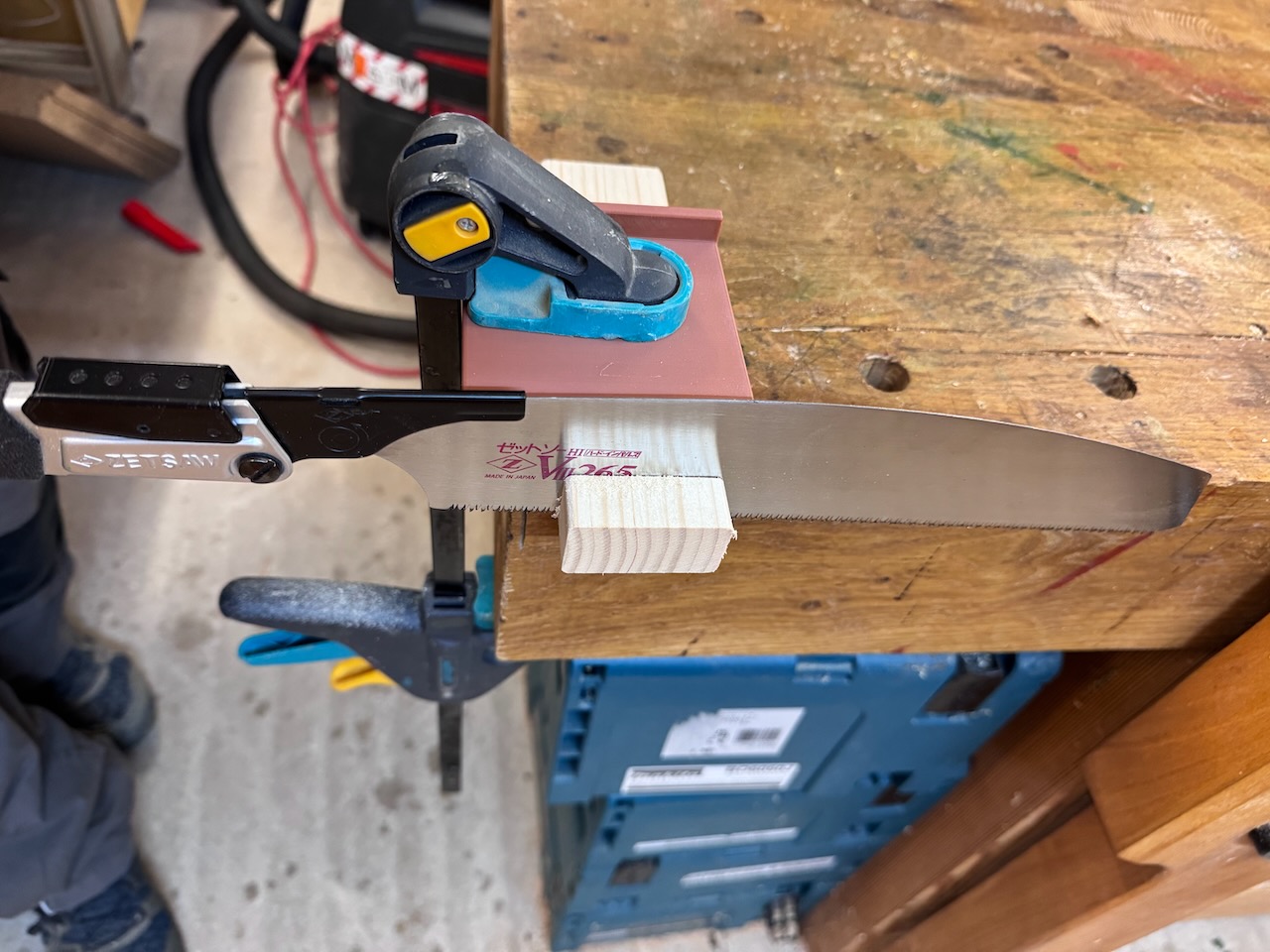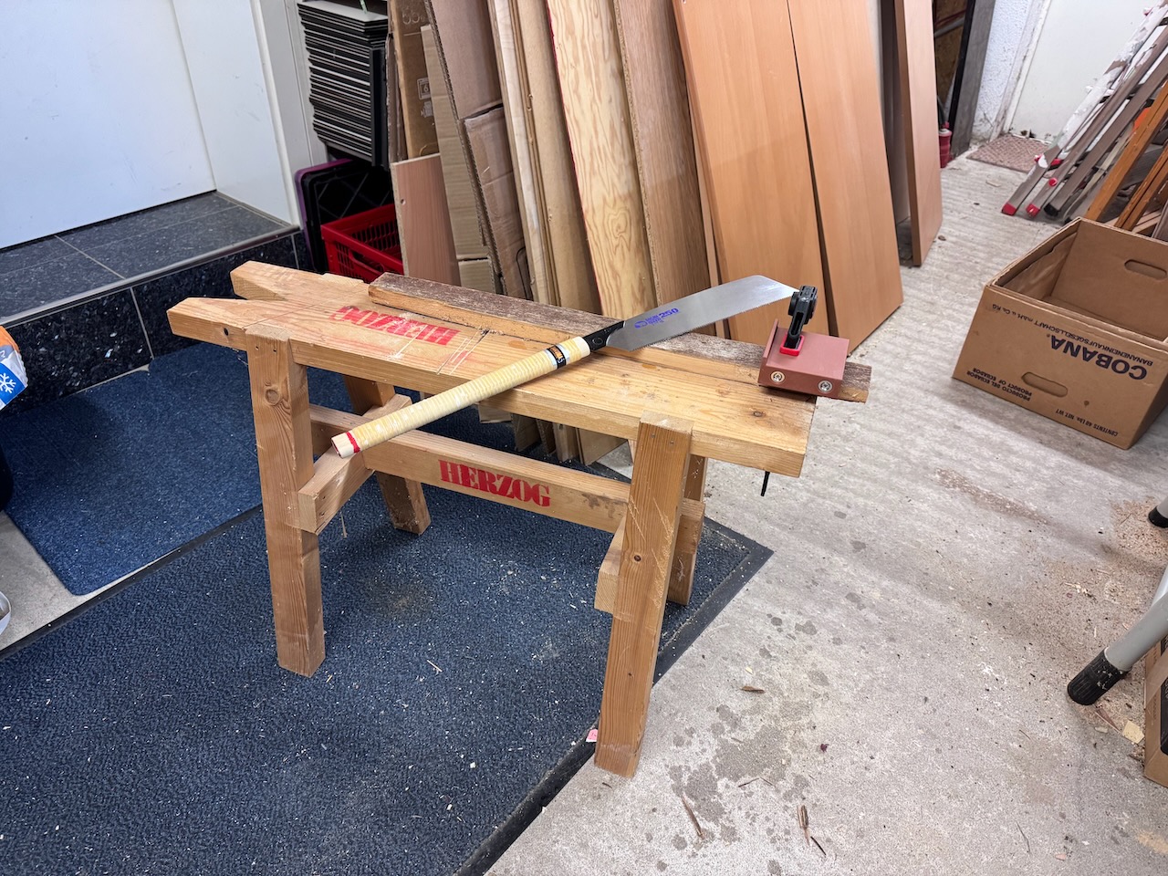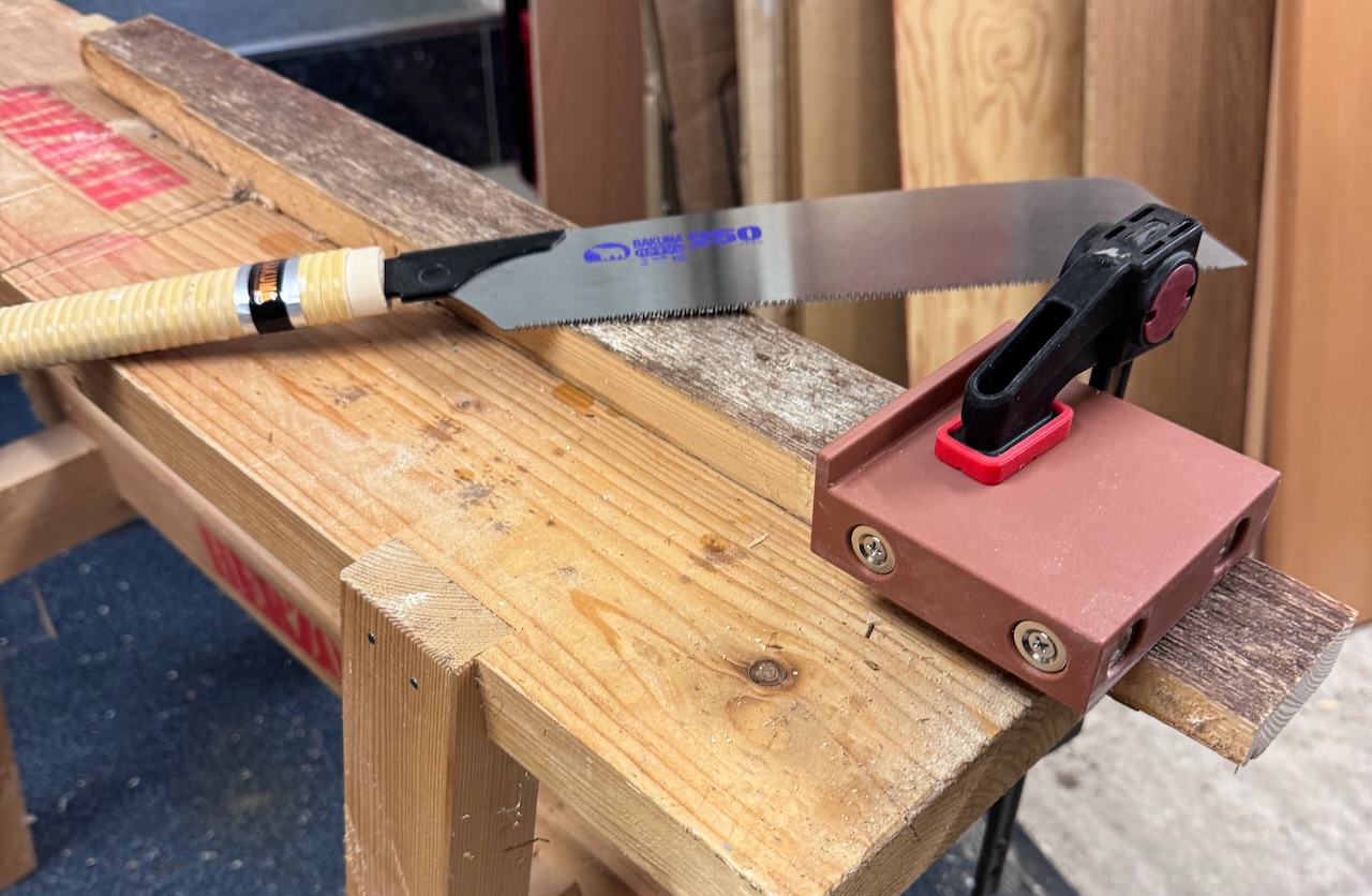 Es steht ein kleines Gemeinschaftsprojekt an, bei dem wir Interessierte Menschen aus dem Bekanntenkreis in das Thema „Holzwerken“ einführen wollen. Die Erfahrung hat dabei gezeigt, dass die meisten Anfänger im Holzwerken am besten mit einer Japansäge zurechtkommen. Deshalb ist die nachfolgend gezeigte Sägeführung auch für die Benutzung mit einer Japansäge (also einer Säge die auf Zug sägt) ausgelegt.