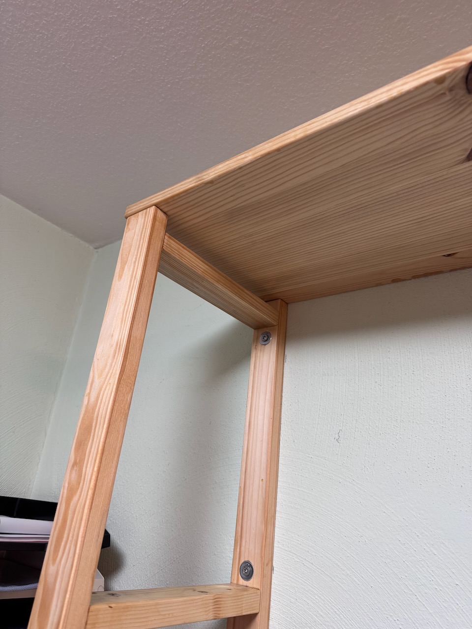 Theoretisch könnte man jetzt die Regalteile auch einfach mittels Holzschrauben miteinander verbinden, wie ich dies auch beim Bau der Kinderwerkbank gemacht habe. Aber das ist natürlich sehr rustikal.